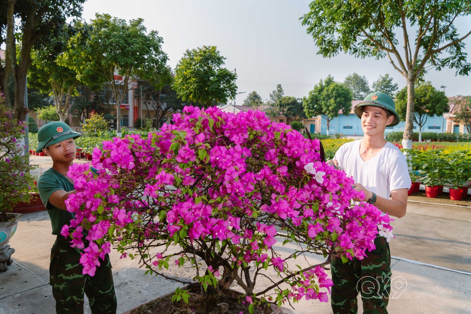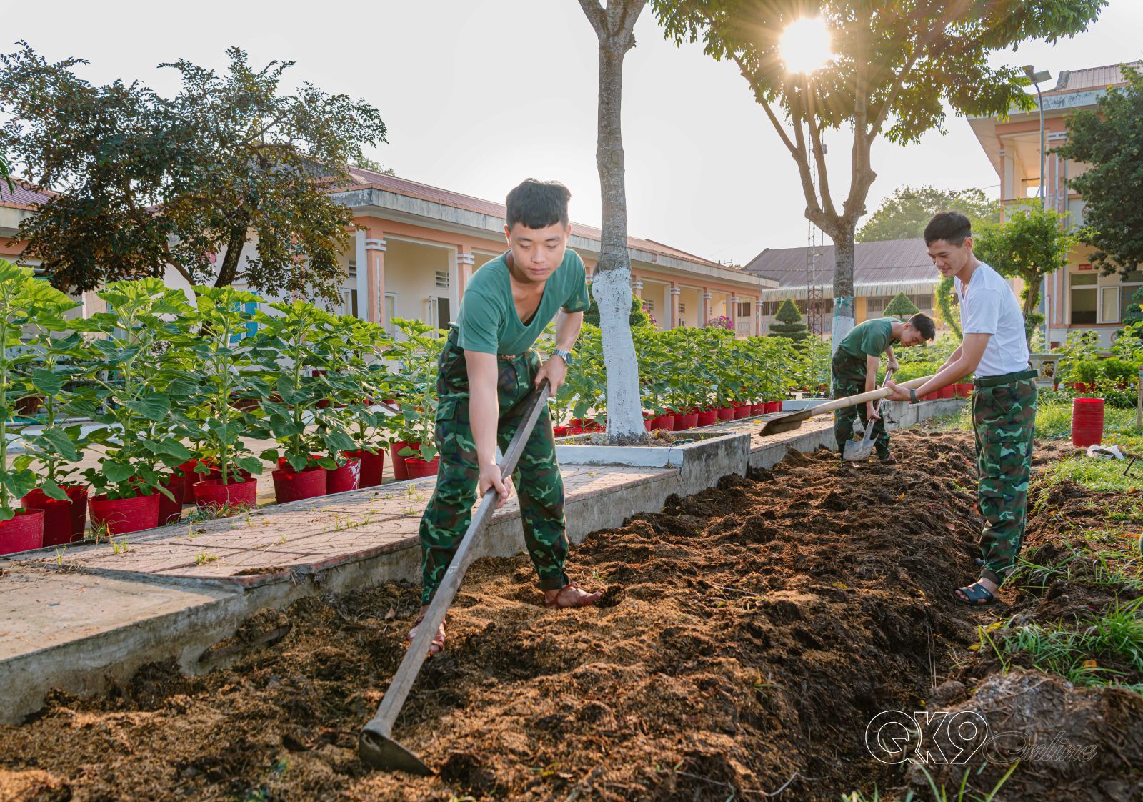 Mỗi luống hoa, mỗi chậu cây đều được chăm chút từ khâu chọn đất, tưới nước đến cắt tỉa, uốn nắn. Với người lính, chăm hoa không chỉ để làm đẹp doanh trại mà còn là phút giây lắng lại sau giờ huấn luyện, gửi gắm tình cảm và trách nhiệm với nơi mình gắn bó.