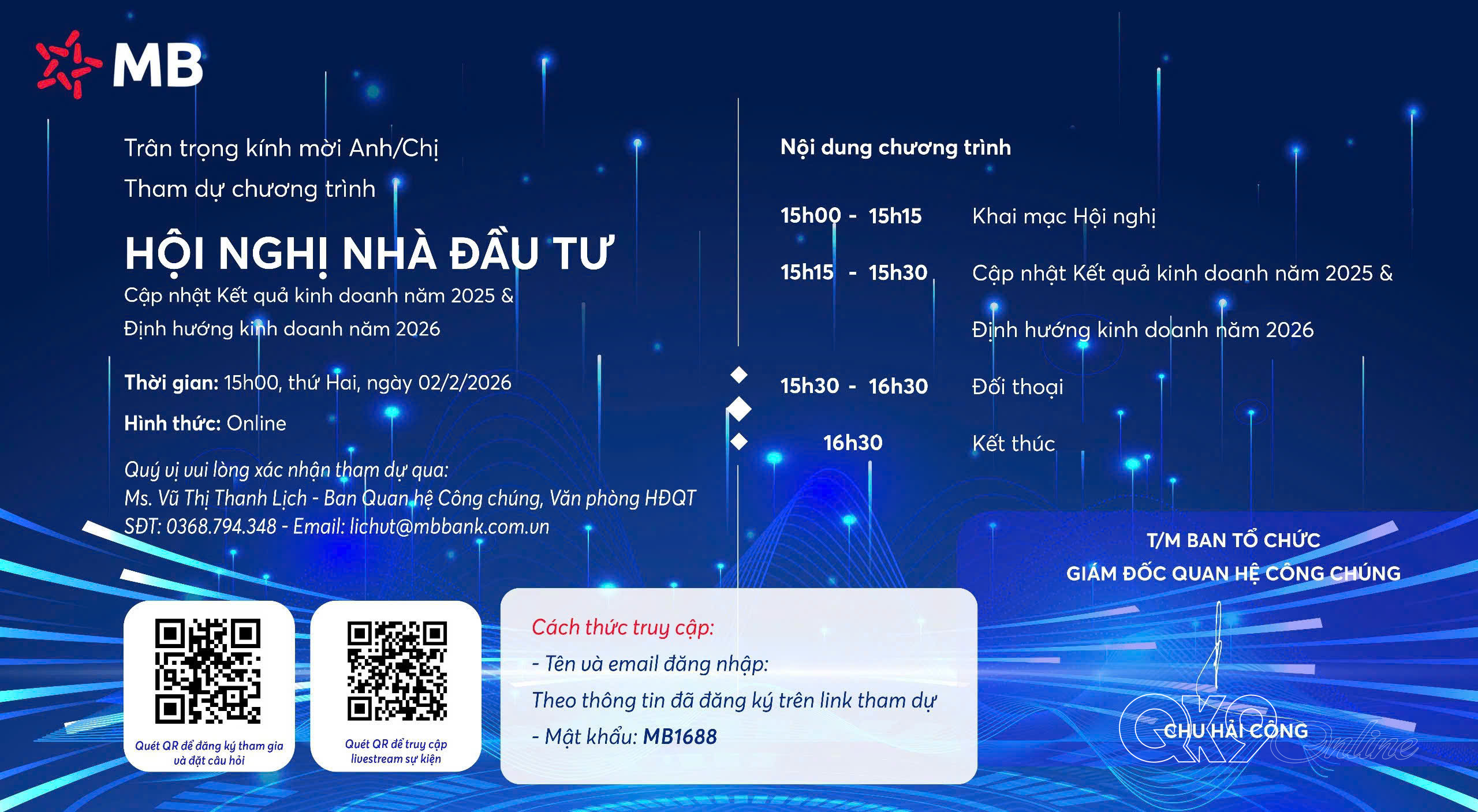 Ngân hàng MB thông báo thời gian, địa điểm diễn ra hội nghị nhà đầu tư.