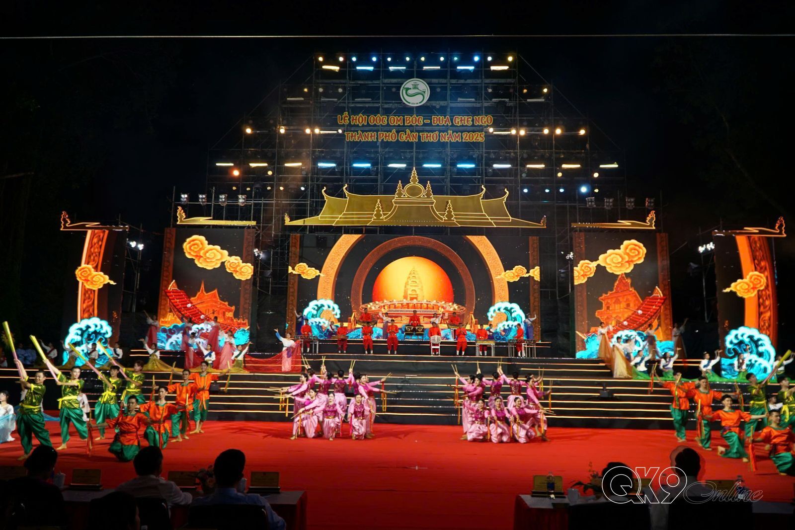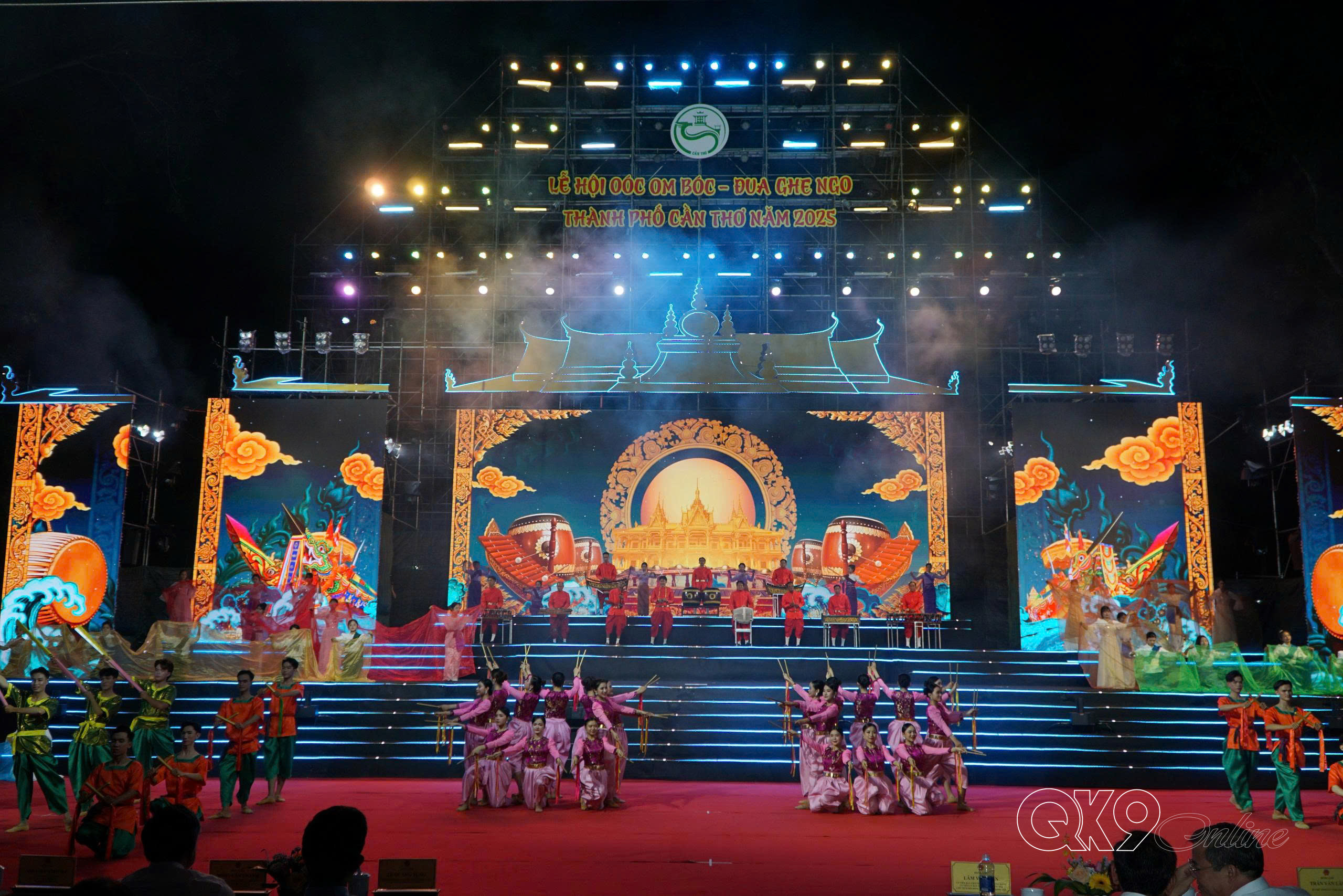 Trên sông Maspéro, Lễ hội Oóc Om Bóc thêm phần rực rỡ với màn trình diễn 4 ghe Cà Hâu và 16 chiếc đèn nước, lung linh phản chiếu ánh trăng. Trong không gian huyền ảo ấy, ánh sáng của nhịp sống hiện đại hòa cùng tiếng trống truyền thống, tạo nên buổi hòa âm, phối sáng sống động.