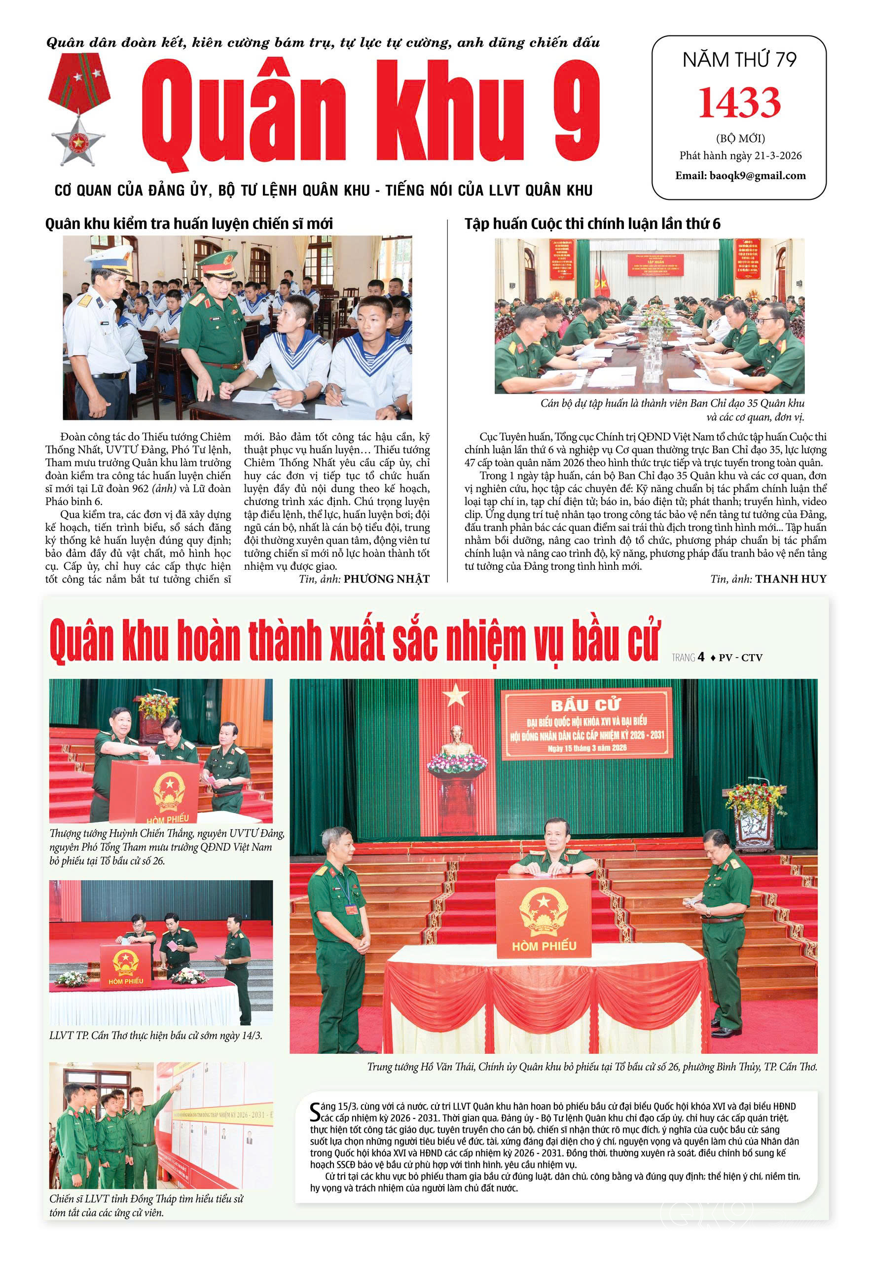 Báo in Quân khu 9 số 1433 ra ngày 21/3/2026