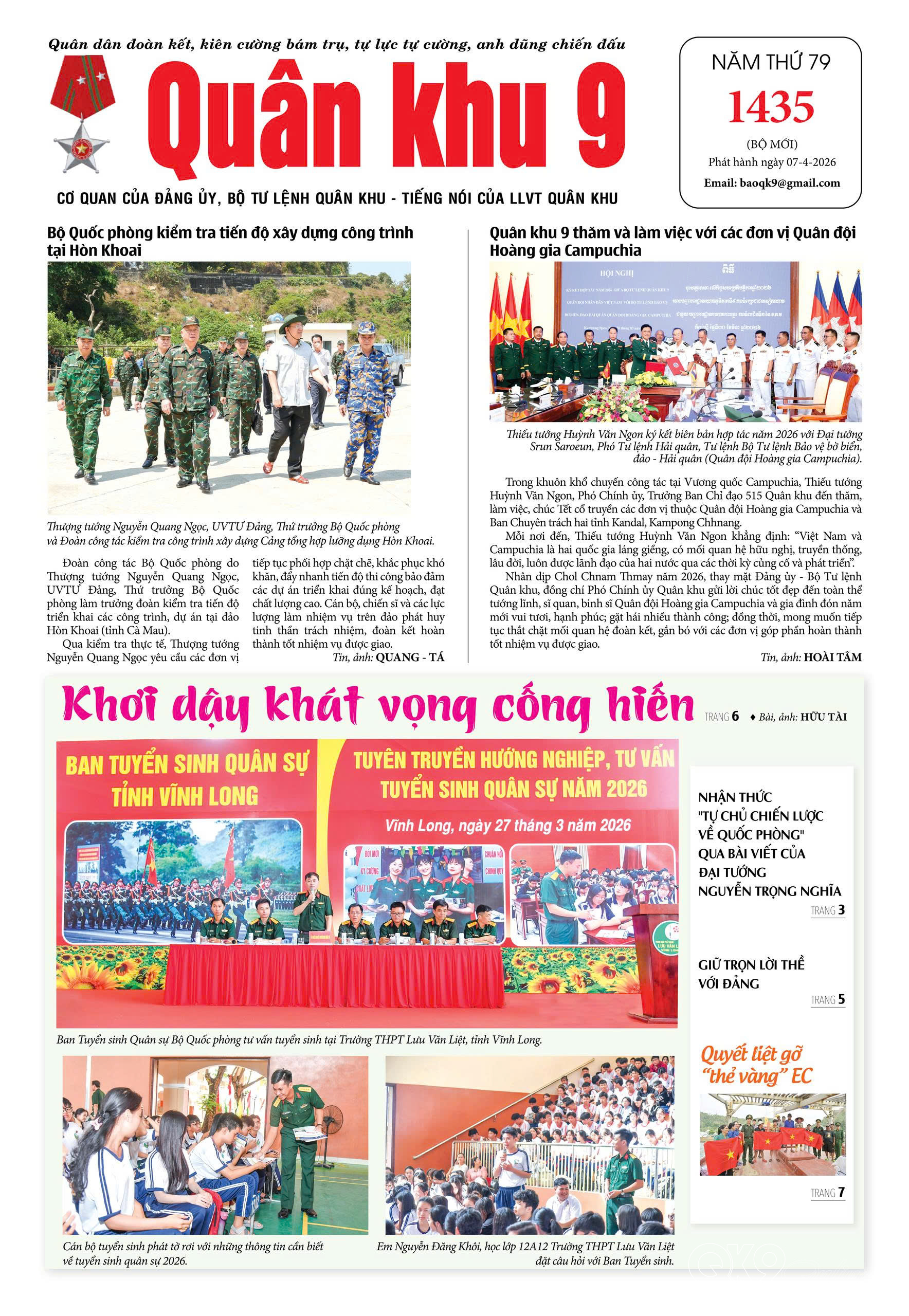 Báo in Quân khu 9 số 1433 ra ngày 21/3/2026