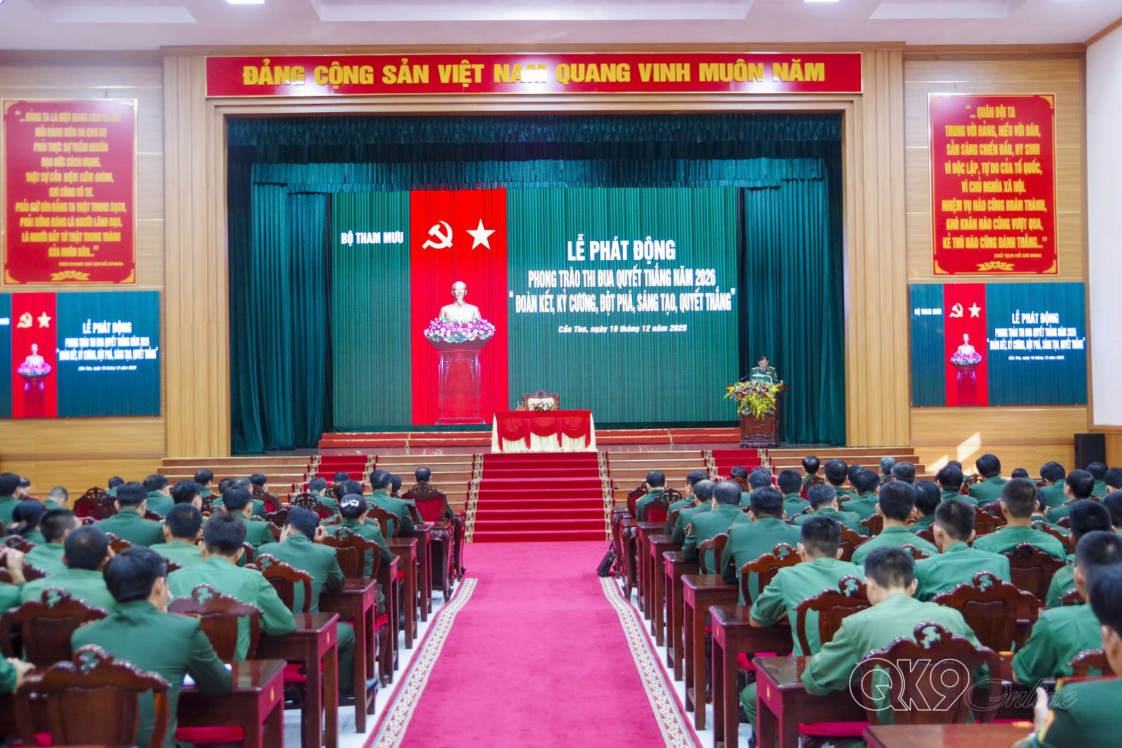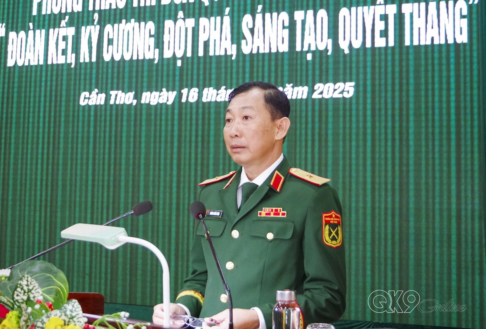 Với chủ đề “Đoàn kết, kỷ cương, đột phá, sáng tạo, quyết thắng”, tại Lễ phát động thi đua, Thiếu tướng Huỳnh Chiến Công, Phó Tham mưu trưởng Quân khu yêu cầu các cơ quan, đơn vị chủ động nắm, đánh giá, dự báo đúng tình hình, kịp thời tham mưu với Đảng ủy - Bộ Tư lệnh Quân khu xử lý tốt các tình huống, giữ vững thế chủ động chiến lược, không để bị động, bất ngờ. Thực hiện đồng bộ các giải pháp nâng cao chất lượng huấn luyện, đào tạo; kết hợp huấn luyện với rèn luyện thể lực của bộ đội, nâng cao khả năng cơ động trong mọi điều kiện. Duy trì nghiêm nền nếp, chế độ, nâng cao trình độ, khả năng sẵn sàng chiến đấu và chiến đấu của các đơn vị góp phần bảo vệ vững chắc độc lập, chủ quyền, thống nhất, toàn vẹn lãnh thổ, vùng trời, vùng biển, đảo, biên giới, nội địa và không gian mạng. Chuẩn bị tốt phương án, lực lượng, phương tiện, chủ động tham gia phòng chống, khắc phục hậu quả thiên tai, sự cố, biến đổi khí hậu, ô nhiễm môi trường, dịch bệnh, tìm kiếm cứu hộ, cứu nạn.