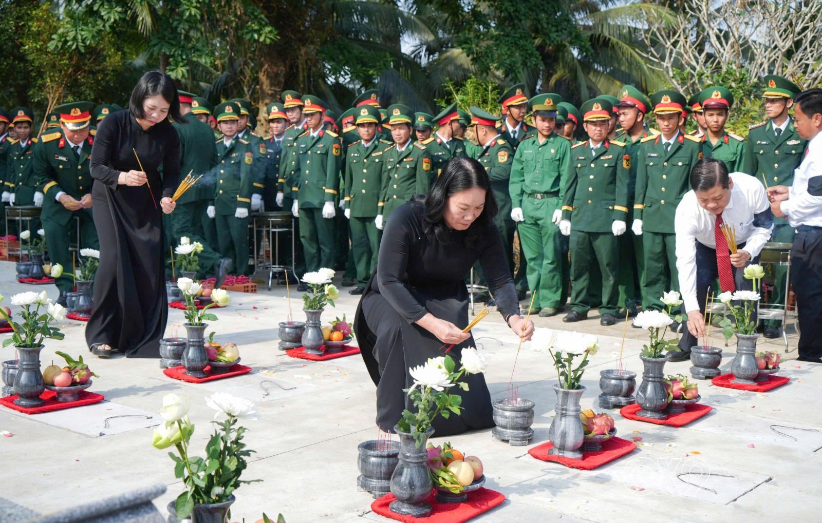 Trong không khí trang nghiêm, thành kính, các đại biểu đã dâng hương, dâng hoa và dành phút mặc niệm tưởng nhớ các anh hùng liệt sĩ đã anh dũng chiến đấu, hy sinh vì sự nghiệp bảo vệ chủ quyền, an ninh quốc gia và toàn vẹn lãnh thổ của Tổ quốc./.