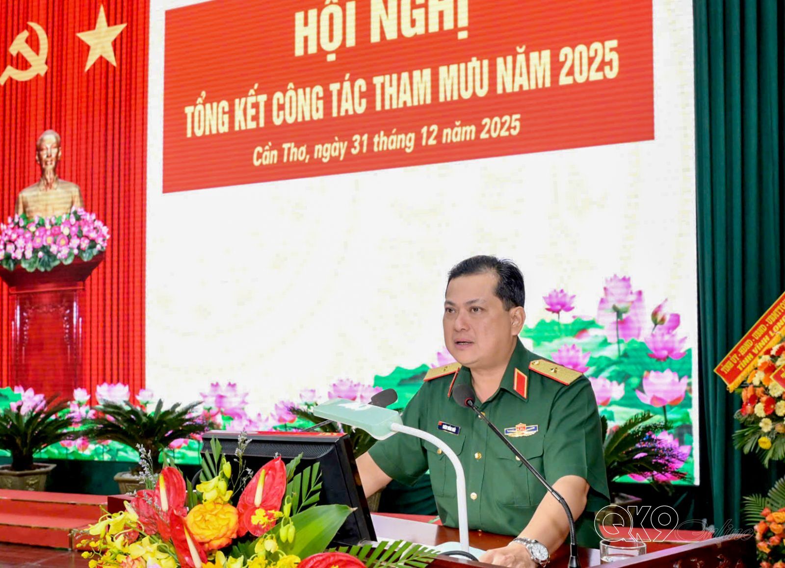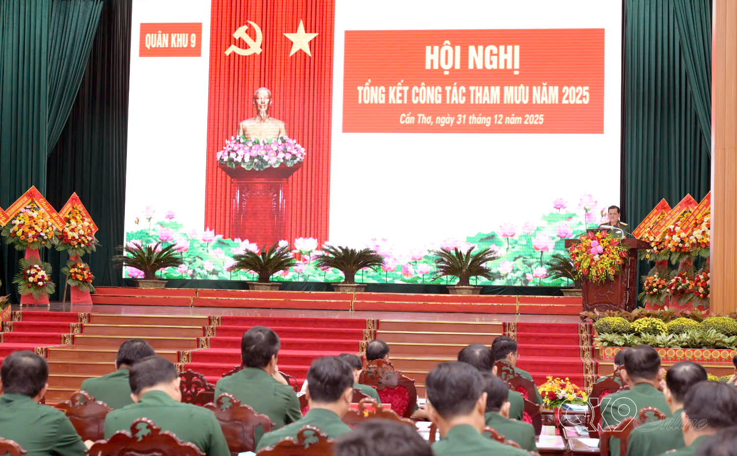 * Thiếu tướng Chiêm Thống Nhất, Phó Tư lệnh, Tham mưu trưởng Quân khu 9 dự, chỉ đạo Hội nghị Tổng kết công tác Tham mưu năm 2025 và phương hướng năm 2026.