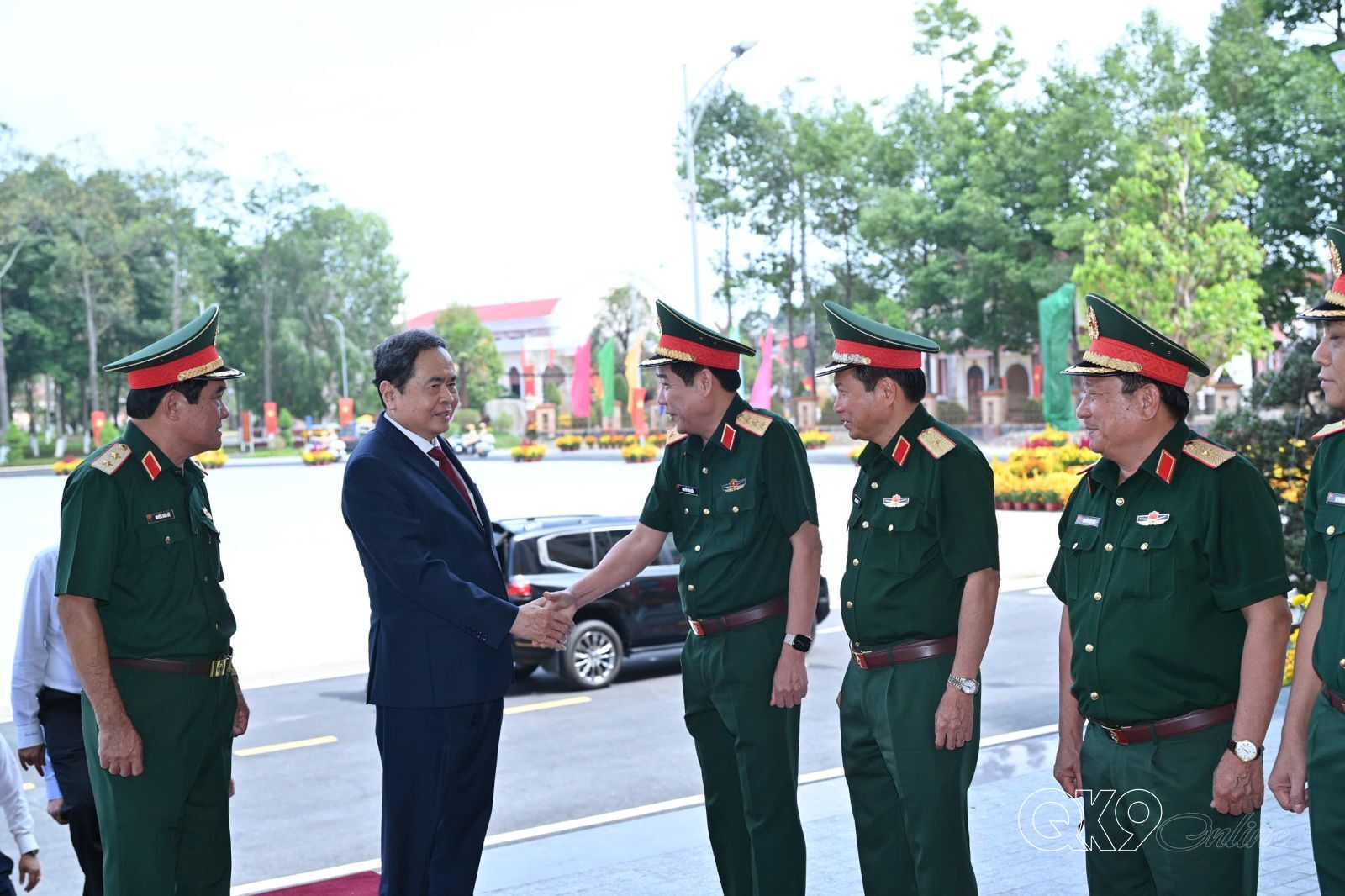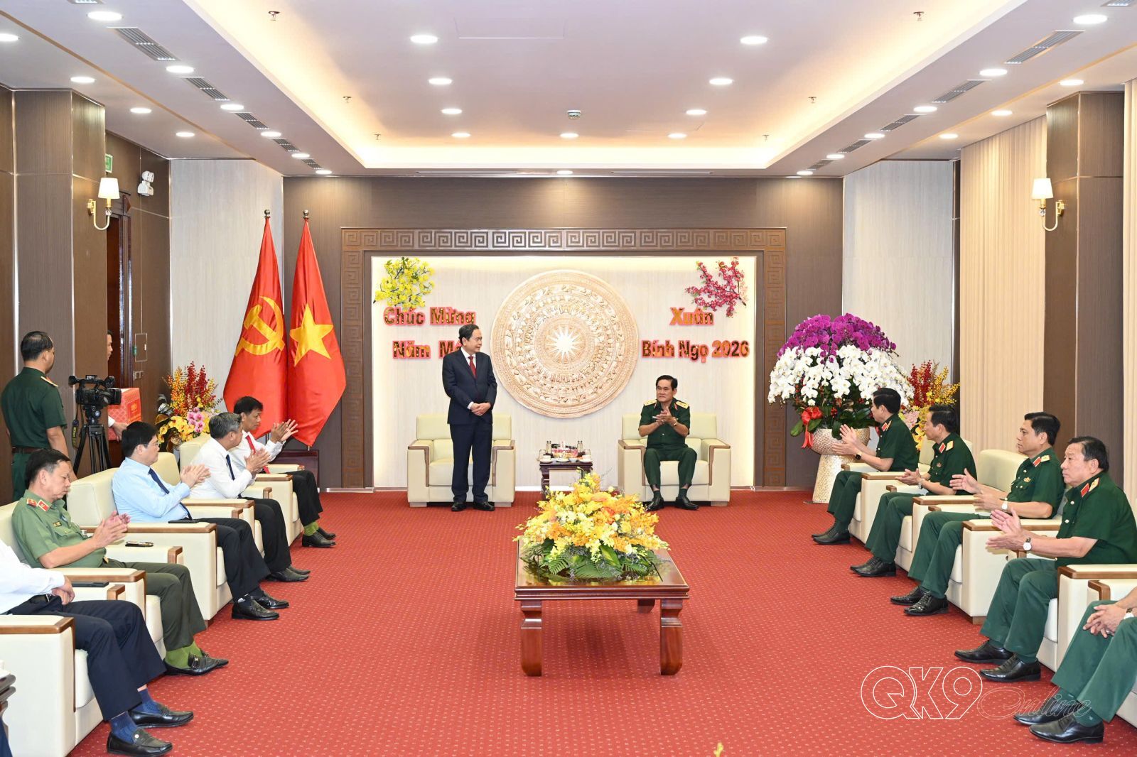 Chủ tịch Quốc hội Trần Thanh Mẫn trân trọng chuyển lời chúc mừng năm mới của Tổng Bí thư Tô Lâm, Chủ tịch nước Lương Cường và Thủ tướng Chính phủ Phạm Minh Chính tới toàn thể cán bộ, chiến sĩ. Biểu dương những thành tựu của Quân khu trong năm 2025. Chủ tịch Quốc hội đánh giá cao vai trò của Quân khu trong việc giữ vững ổn định chính trị, củng cố Quốc phòng - An ninh và thúc đẩy phát triển kinh tế vùng Đồng bằng sông Cửu Long.