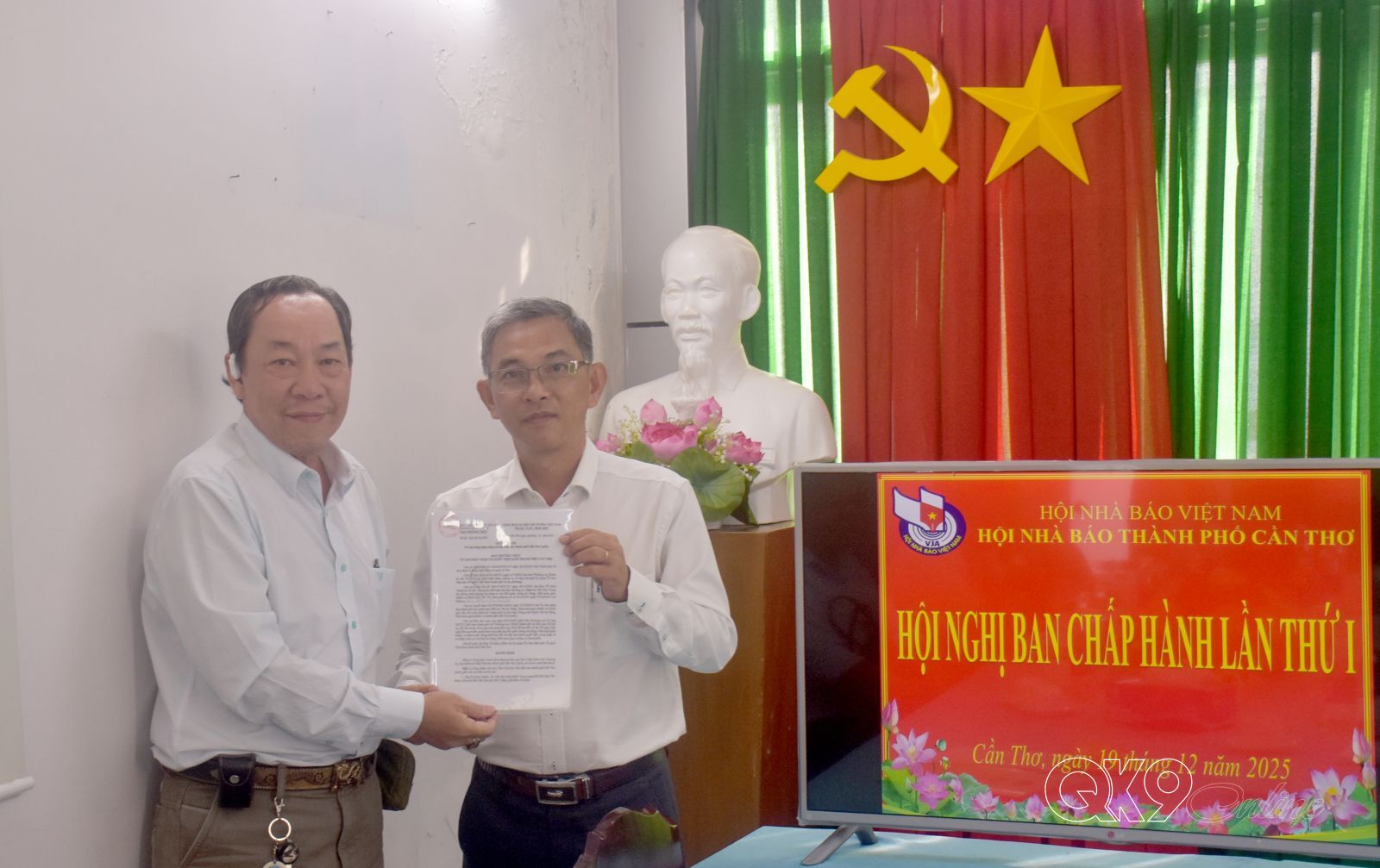 Dịp này, HNB thành phố công bố Quyết định của Ban Thường trực Ủy ban MTTQVN TP. Cần Thơ về việc công nhận nhân sự HNB TP. Cần Thơ. Theo đó, Ban Chấp hành Hội Nhà báo TP. Cần Thơ gồm 19 thành viên, Nhà báo Tạ Đình Nghĩa, Ủy viên Ban Chấp hành Trung ương HNB Việt Nam, Chủ tịch HNB tỉnh Sóc Trăng (cũ), giữ chức Chủ tịch HNB TP. Cần Thơ; Nhà báo Vũ Thị Phương Hà, Ủy viên Ban Kiểm tra Hội Nhà báo Việt Nam, Tổng Biên tập Báo Quân khu 9 giữ chức Phó Chủ tịch, Trưởng Ban Kiểm tra; Nhà báo Thái Hoàng Hinh, Phó Tổng Biên tập Báo và Phát thanh, Truyền hình Cần Thơ giữ chức Phó Chủ tịch./.
