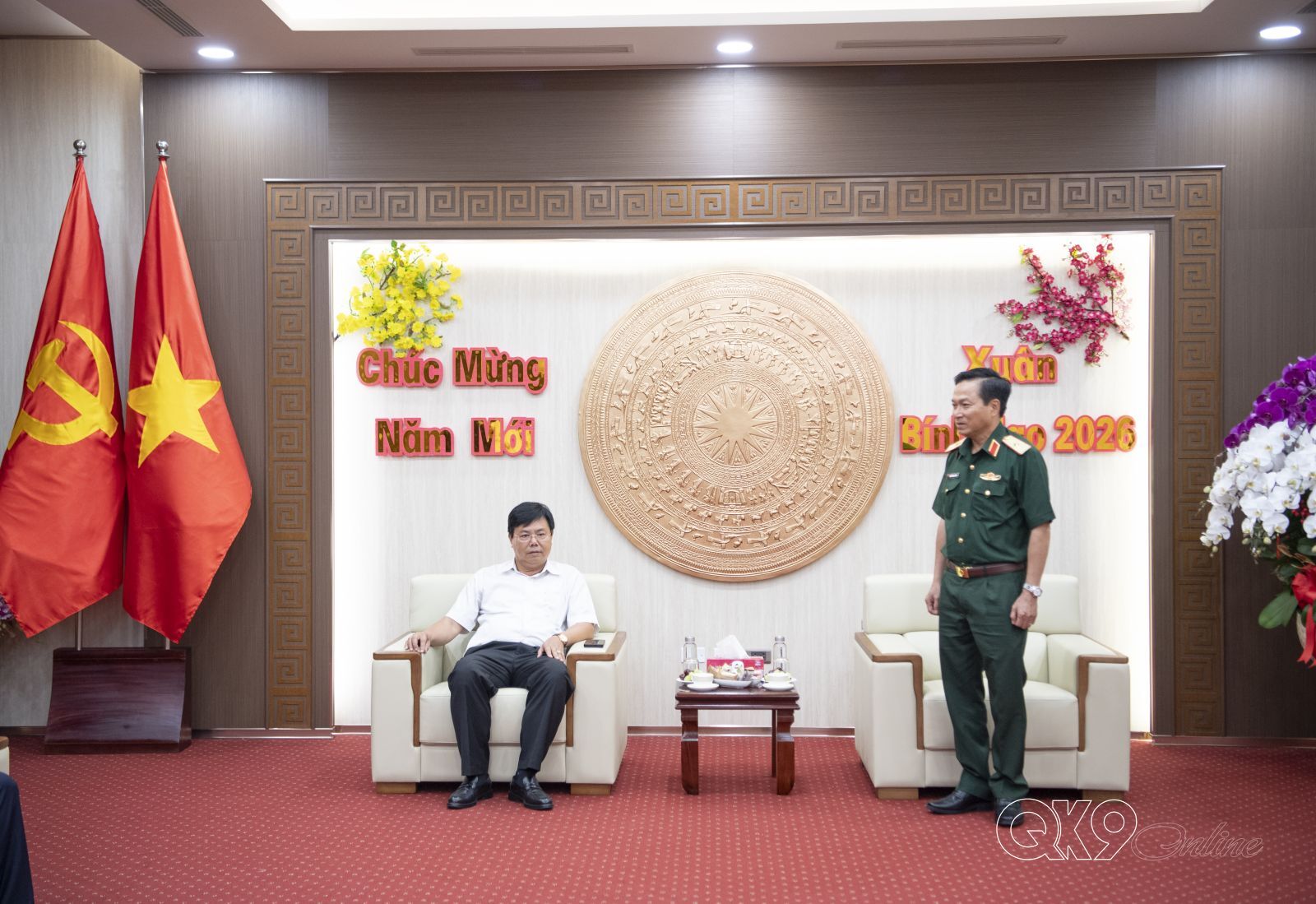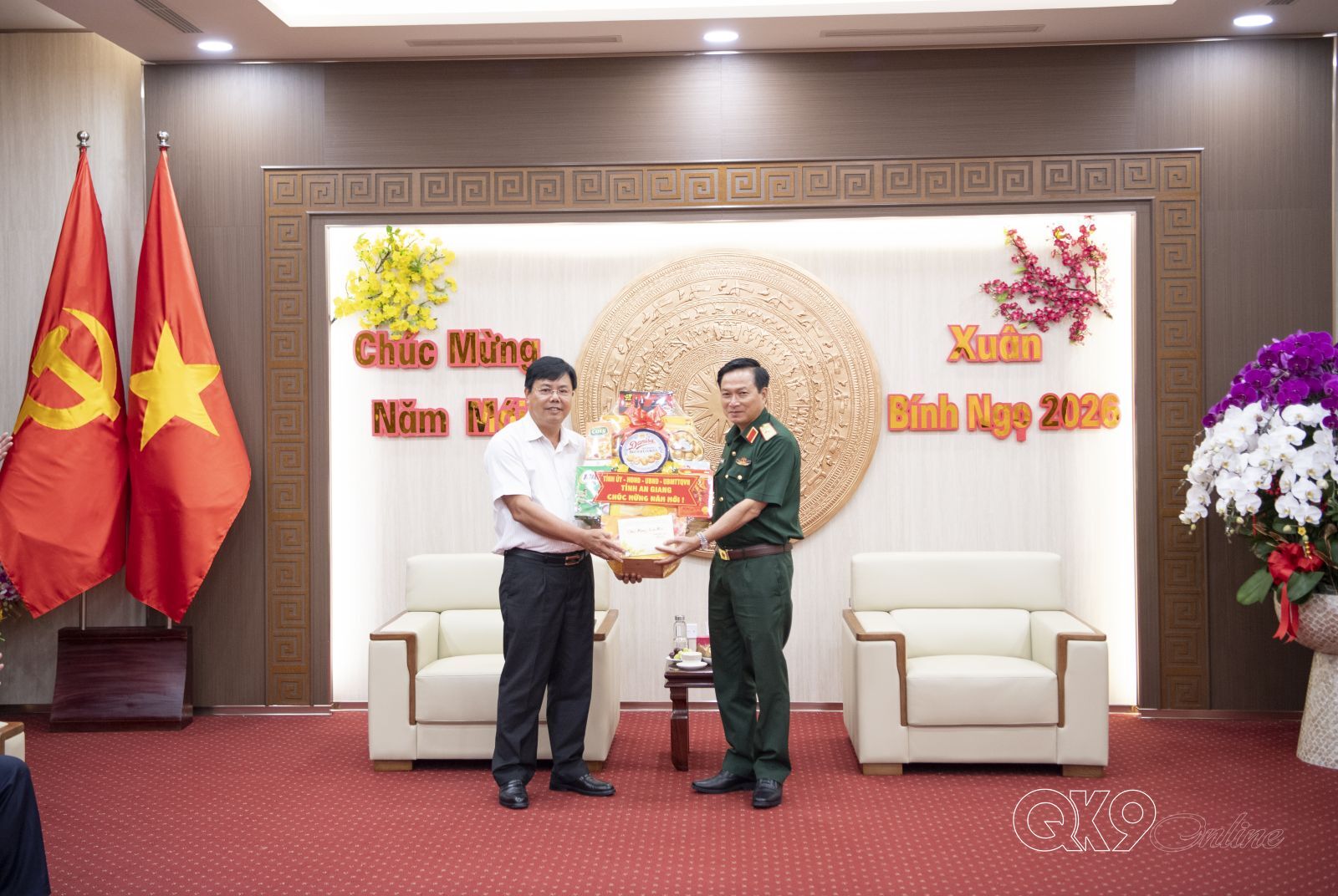 Thay mặt Đảng ủy, Bộ Tư lệnh Quân khu, Thiếu tướng Nguyễn Minh Triều cảm ơn sự quan tâm của lãnh đạo tỉnh An Giang trong hỗ trợ LLVT hoàn thành tốt nhiệm vụ QS, QP thời gian qua. Đồng thời, chúc mừng thành tích của tỉnh đạt được các chỉ tiêu phát triển trong năm qua. Mong thời gian tới tỉnh An Giang và Quân khu tiếp tục phối hợp tham mưu với Đảng, Nhà nước, Bộ Quốc phòng về tình hình ANCT trên địa bàn; tăng cường phối hợp trong phát triển KT-XH, QS, QP. Tiếp tục quan tâm hỗ trợ LLVT địa phương, nhất là Ban Chỉ huy PTKV và cán bộ mới về xã công tác. Nhân dịp năm mới, Thiếu tướng Nguyễn Minh Triều chúc lãnh đạo và Nhân dân tỉnh An Giang nhiều sức khỏe, hoàn thành các chỉ tiêu phát triển trong năm 2026./.