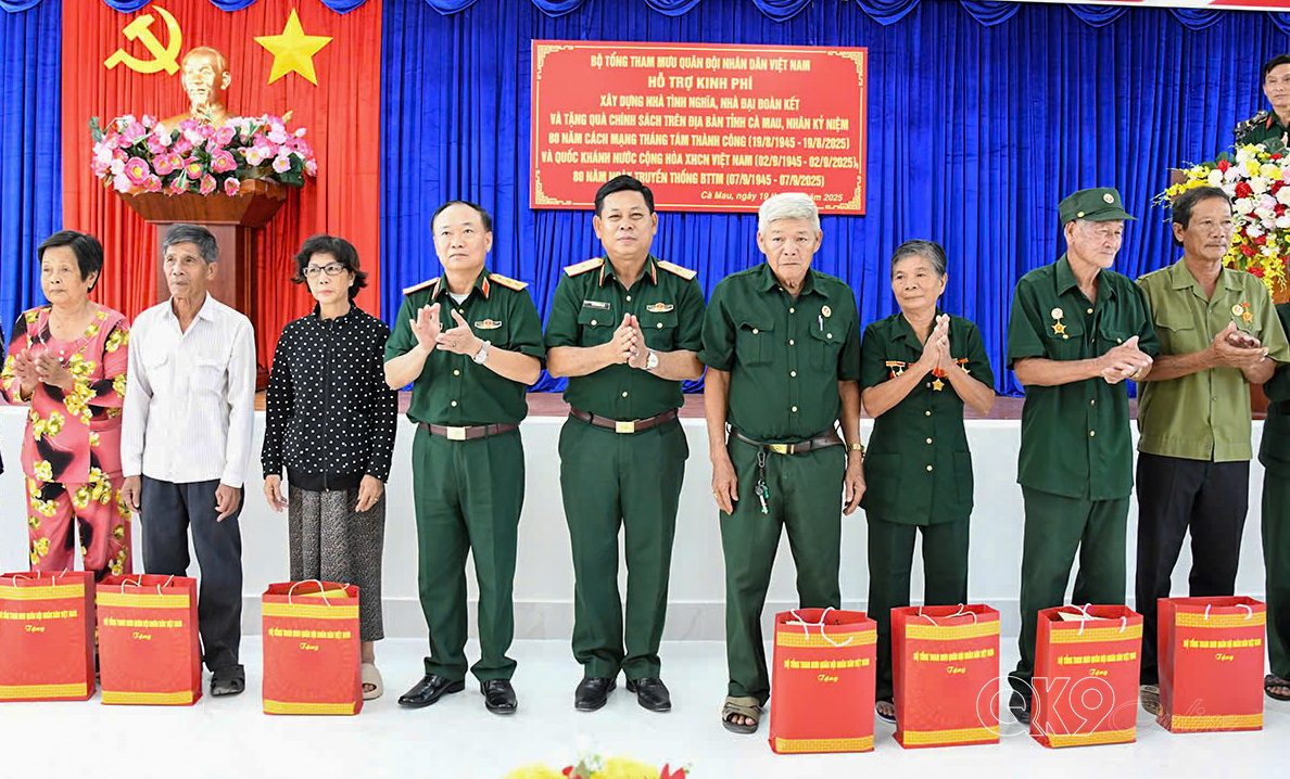 Dịp này, đoàn công tác Bộ Tổng Tham mưu tặng 16 căn Nhà Tình nghĩa, Nhà Đại đoàn kết; 80 suất quà gia đình có công cách mạng, gia đình hoàn cảnh khó khăn. Tổng trị giá trên 1,1 tỷ đồng. Thủ trưởng Bộ Tư lệnh Quân khu 9 tặng 34 phần quà. Đây là một trong những hoạt động tri ân gia đình chính sách, gia đình có công với cách mạng chào mừng kỷ niệm Cách mạng Tháng Tám và Quốc khánh nước Cộng hòa xã hội chủ nghĩa Việt Nam./.