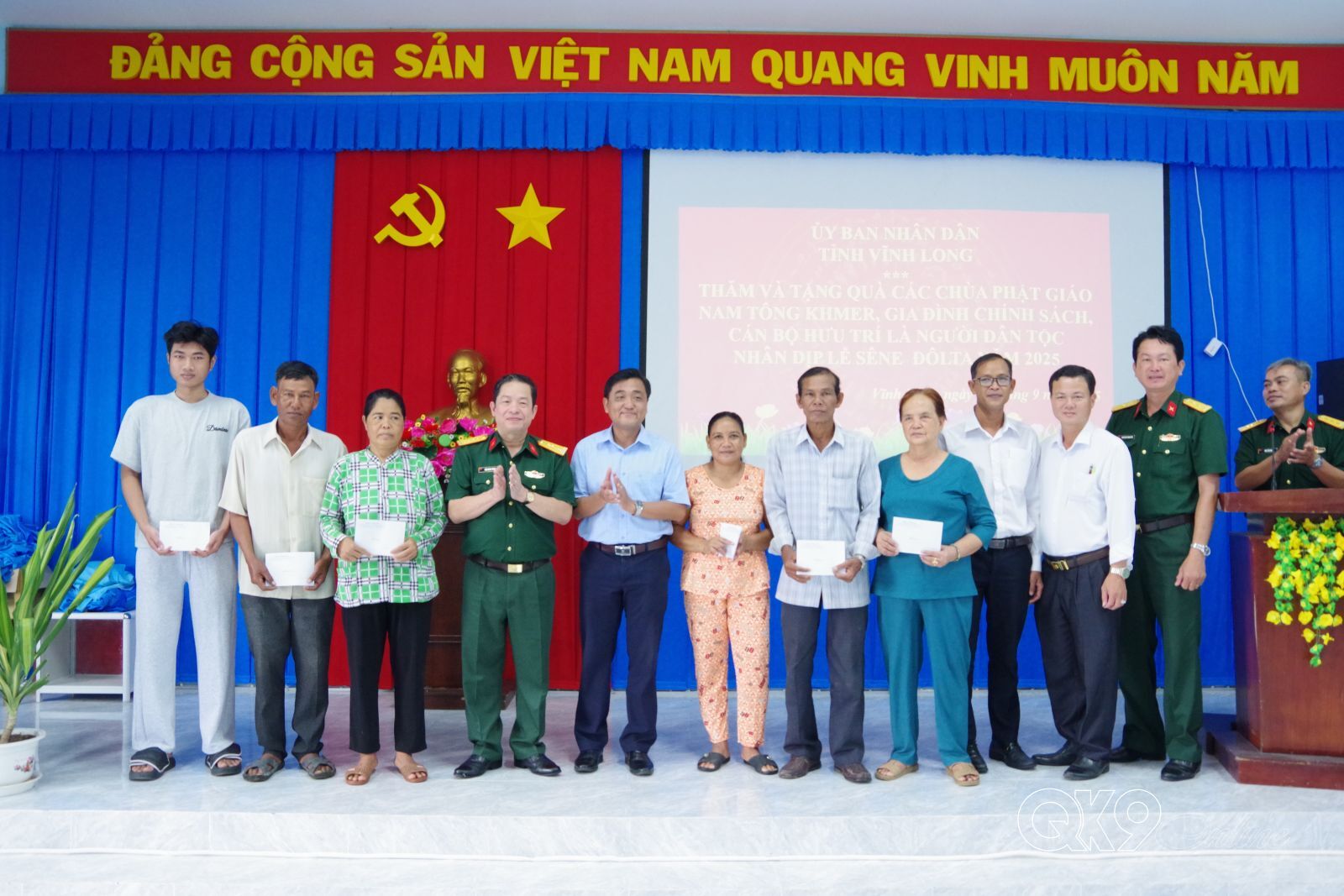 Đại tá Trần Minh Trang, ân cần thăm hỏi, tặng quà gia đình chính sách, cán bộ hưu trí người dân tộc Khmer và thông tin một số kết quả phát phát triển KT-XH, kết quả thực hiện chương trình mục tiêu quốc gia và chính sách dân tộc, chính sách ASXH, các phòng trào thi đua yêu nước, công tác QS, QP địa phương….