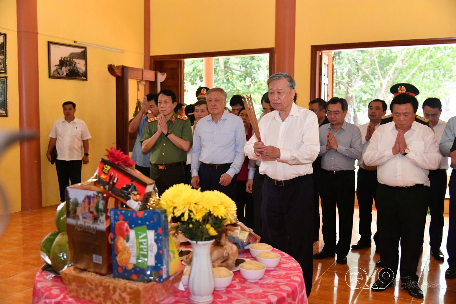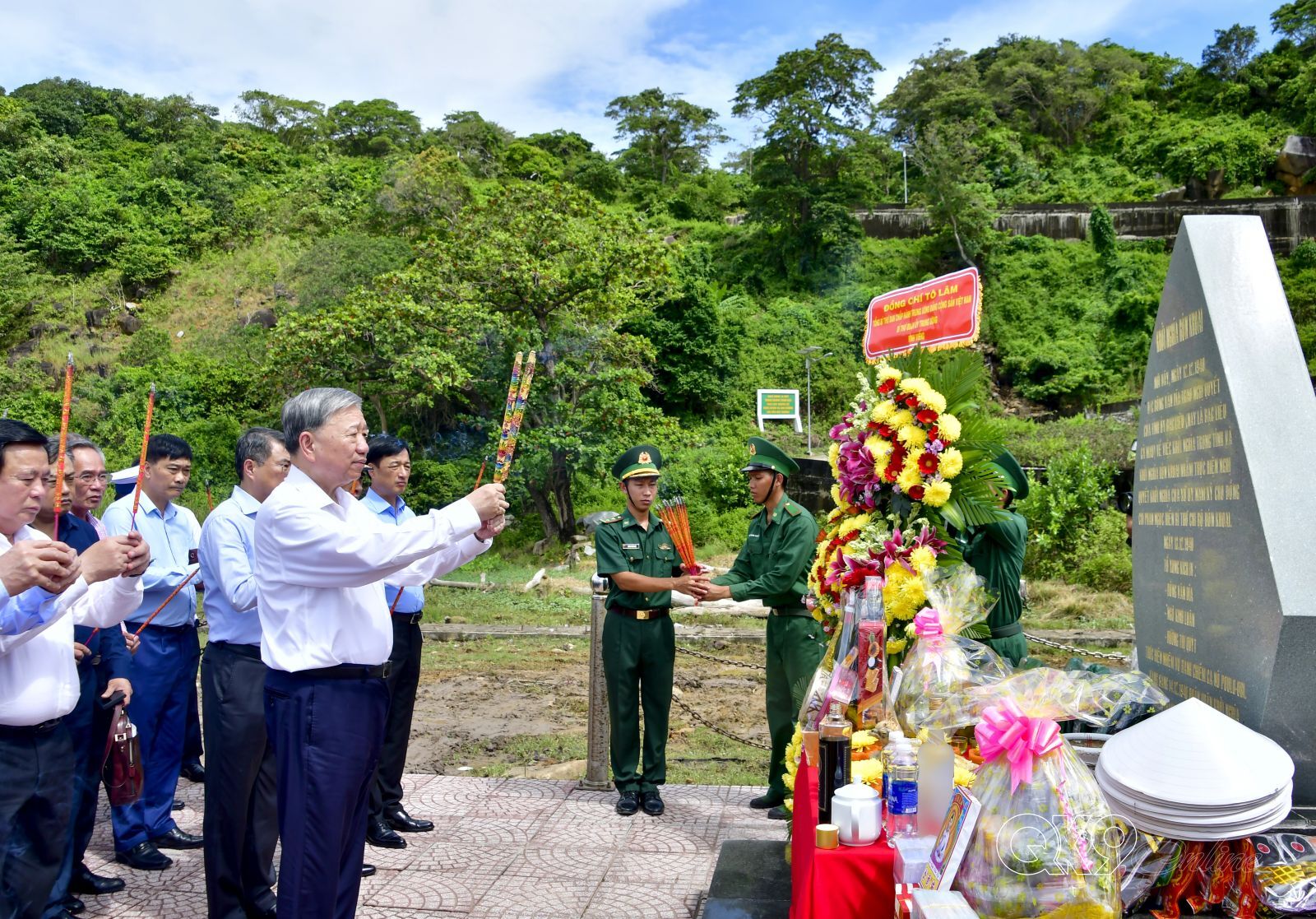 Tham dự đoàn có đồng chí Lê Minh Hưng, Ủy viên Bộ Chính trị, Bí thư Trung ương Đảng, Trưởng Ban Tổ chức Trung ương; đồng chí Bùi Thị Minh Hoài, Ủy viên Bộ Chính trị, Chủ tịch Ủy ban Trung ương Mặt trận Tổ quốc Việt Nam; đồng chí Nguyễn Xuân Thắng, Ủy viên Bộ Chính trị, Chủ tịch Hội đồng Lý luận Trung ương, Giám đốc Học viện Chính trị Quốc gia Hồ Chí Minh; đồng chí Nguyễn Hòa Bình, Phó Thủ tướng Thường trực Chính phủ; Đại tướng Phan Văn Giang, Ủy viên Bộ Chính trị, Phó Bí thư Quân ủy Trung ương, Bộ trưởng Bộ Quốc phòng; Thượng tướng Huỳnh Chiến Thắng, Ủy viên Trung ương Đảng, Phó Tổng Tham mưu trưởng Quân đội nhân dân Việt Nam và lãnh đạo các ban, bộ, ngành Trung ương.