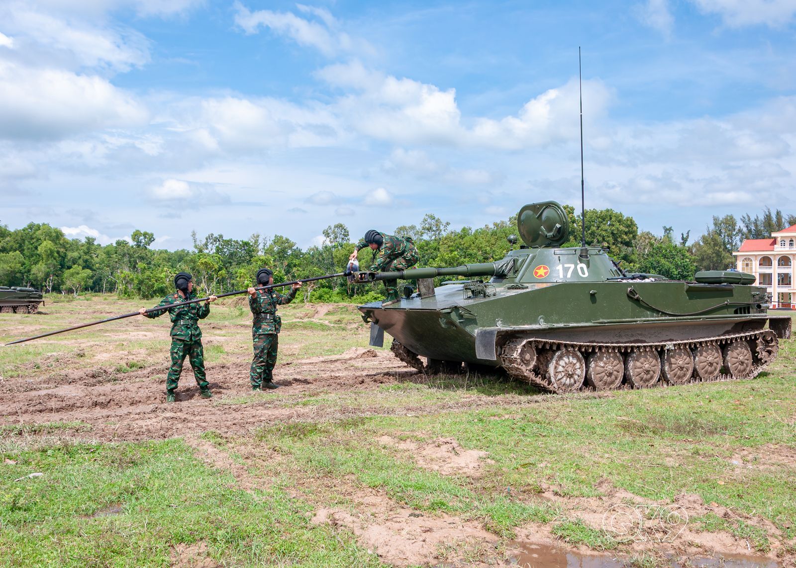Các kíp xe khẩn trương chuẩn bị kiểm tra bắn bài 2B, sẵn sàng cho những loạt đạn “lửathép”