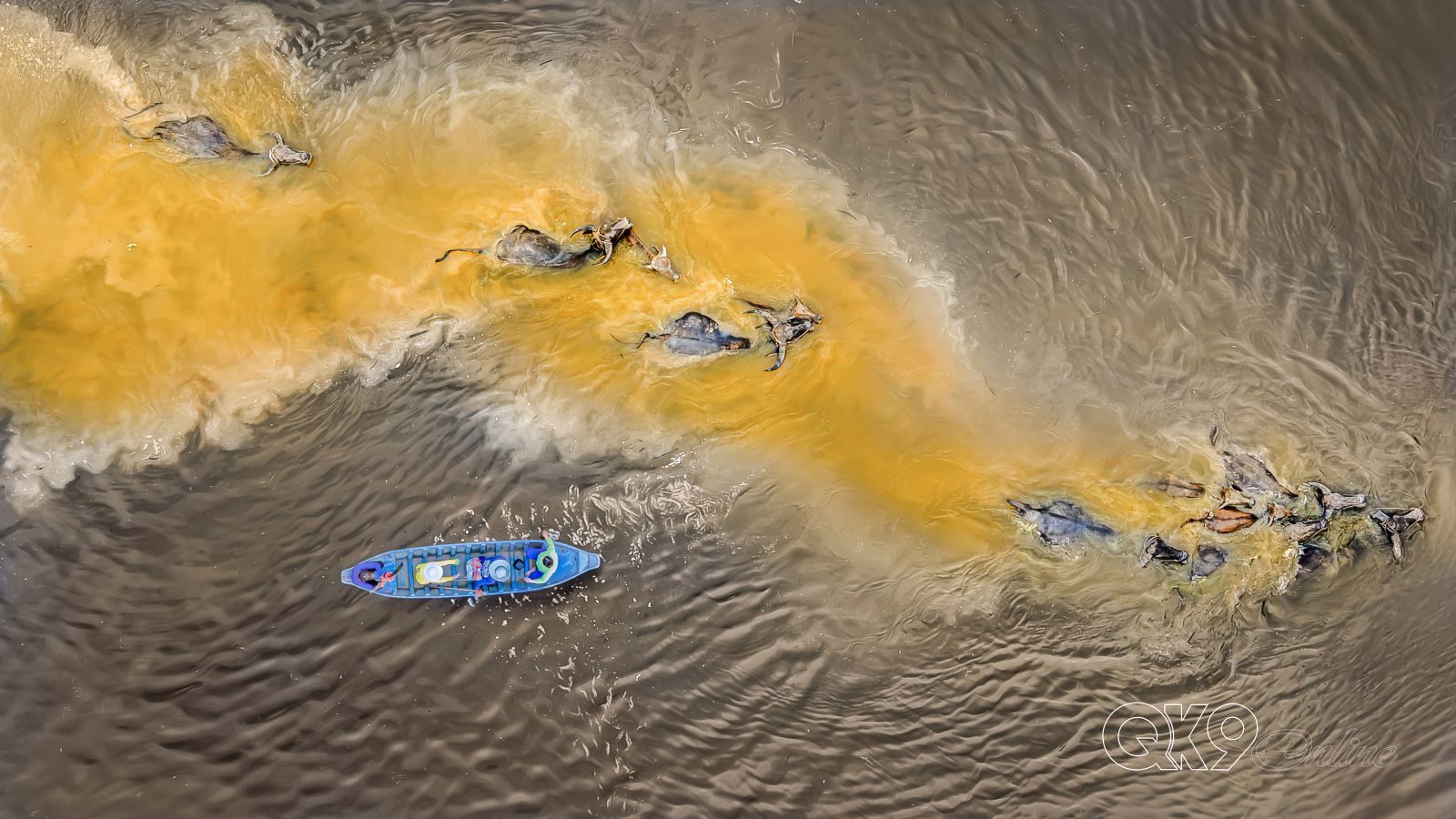 Để đến được nơi có cỏ cho đàn trâu ăn, chú Hai Sang phải lùa trâu bơi qua những con kênh sâu nước chảy xiết.