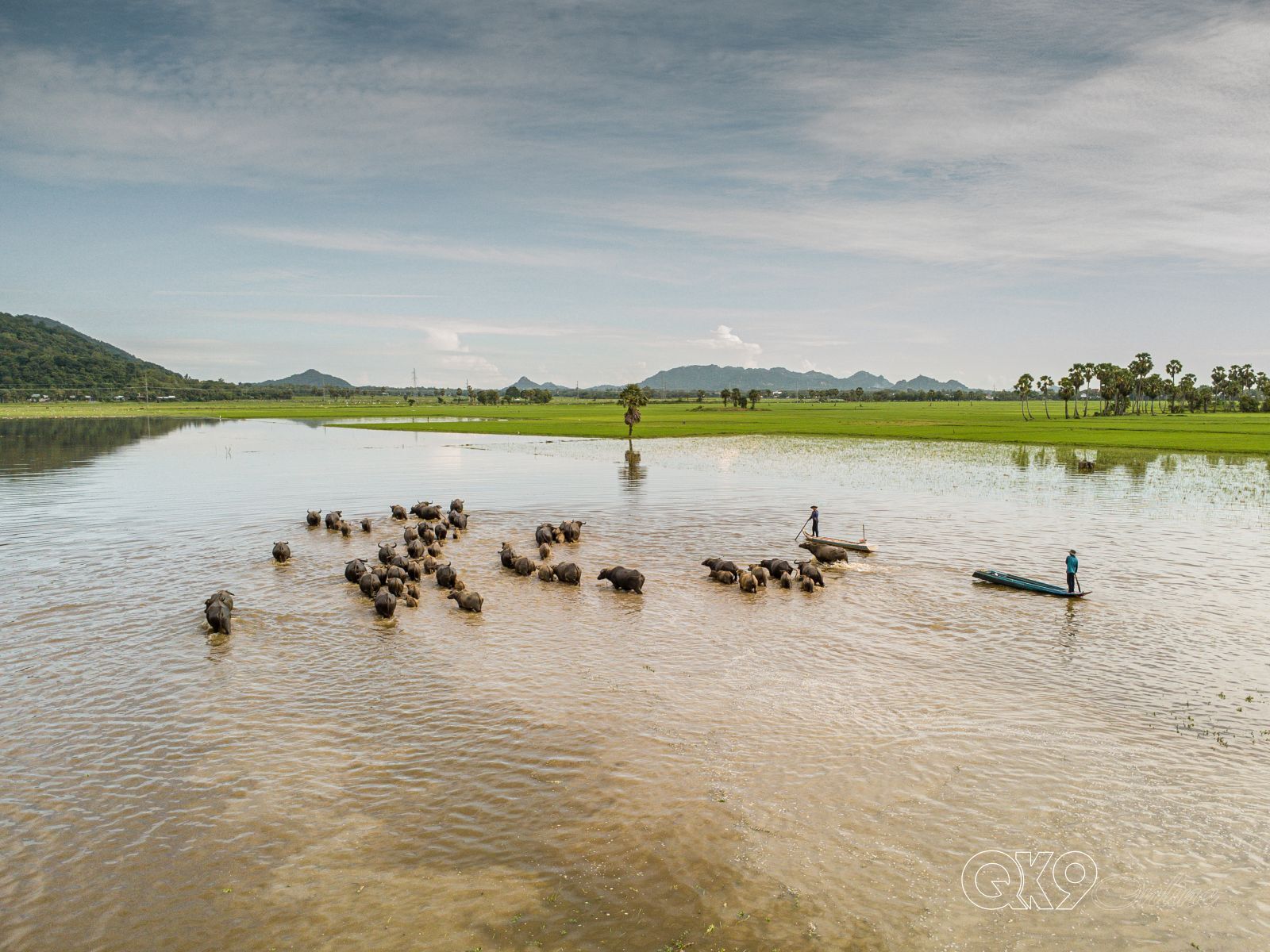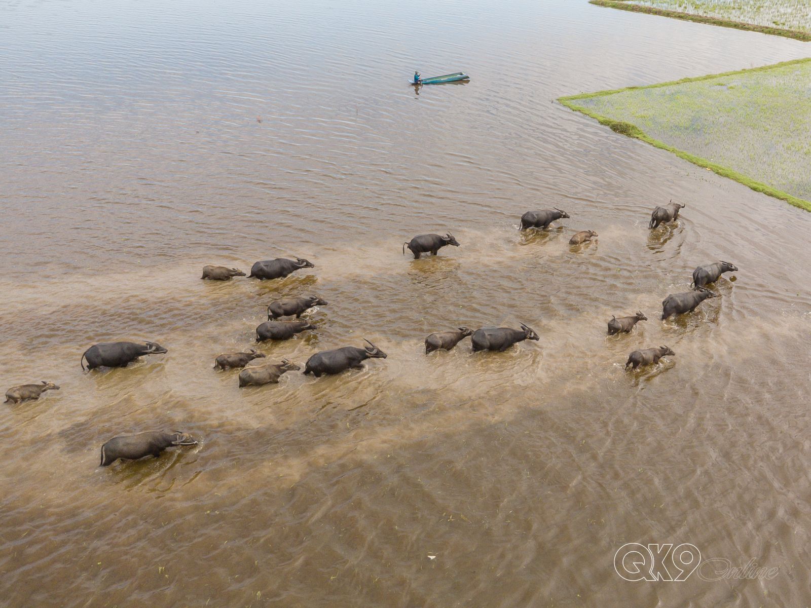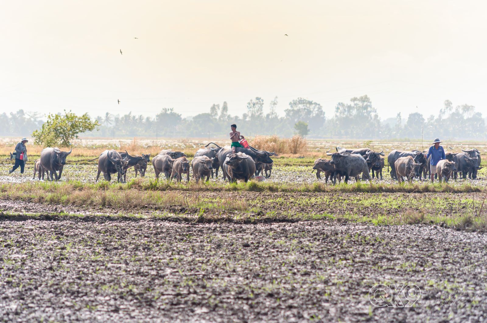 Có khi, chú Hai Sang phải gồng mình lùa đàn trâu băng qua những cánh đồng mênh mông nước,