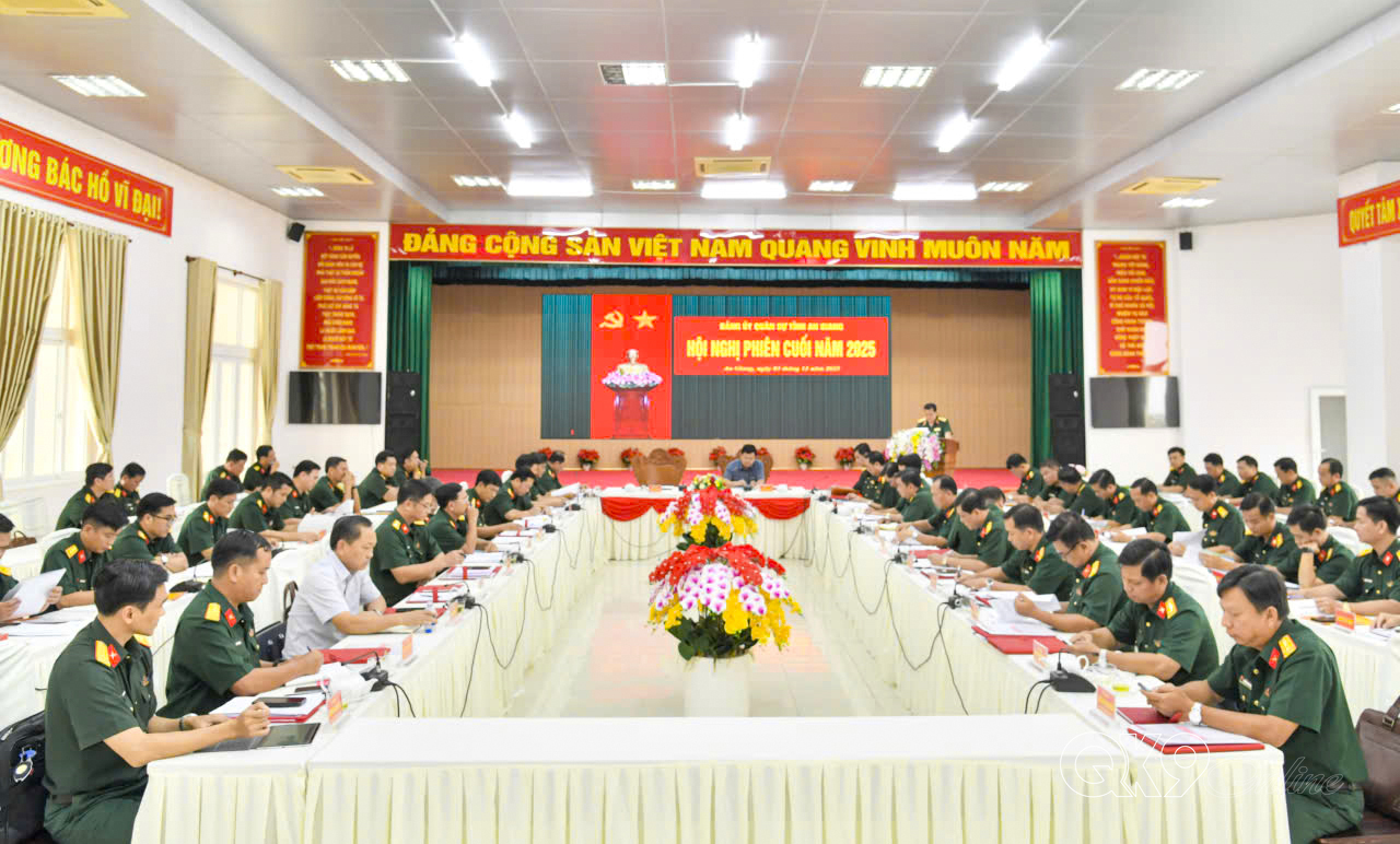 Năm 2025, Đảng ủy, Bộ CHQS tỉnh An Giang tích cực, chủ động lãnh đạo, chỉ đạo; đồng thời, phối hợp các cơ quan, ban, ngành, đoàn thể và cấp ủy, chính quyền địa phương thực hiện có hiệu quả nhiệm vụ quân sự, quốc phòng, biên phòng địa phương, hoàn thành tốt các chỉ tiêu, nhiệm vụ nghị quyết đề ra. Nổi bật là, lãnh đạo sắp xếp, tổ chức quân sự địa phương theo chính quyền 02 cấp; duy trì nghiêm các chế độ trực, huấn luyện, SSCĐ; làm điểm cho Quân khu về huấn luyện thể lực giỏi; lực lượng biên phòng theo dõi, nắm chắc tình hình biên giới, biển đảo, tình hình ngoại biên, tuần tra, quản lý bảo vệ biên giới, vùng biển; tham gia hội thi tàu tốt, hội thao huấn luyện Hải đội Dân quân thường trực đạt 04 giải Nhất. Hoạt động công tác Đảng, công tác Chính trị được triển khai đồng bộ, hiệu quả; tìm kiếm, quy tập 88 hài cốt liệt sĩ; đóng góp trên 12.000 ngày công xây cất 423 căn nhà (Chương trình xóa nhà tạm, nhà dột nát). Bảo đảm tốt công tác hậu cần, kỹ thuật, tài chính cho các hoạt động; có 418 tập thể và 1.169 cá nhân được lãnh đạo các cấp khen thưởng;...