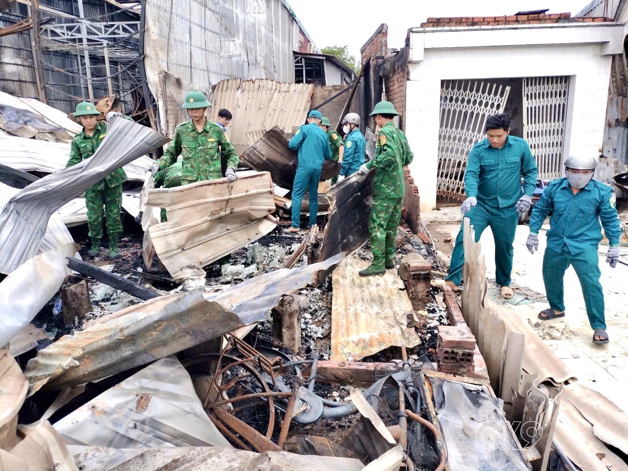 Sáng cùng ngày, Đồn Biên phòng Tân Tiến (Bộ đội Biên phòng tỉnh Cà Mau) kịp thời phân công lực lượng hỗ trợ người dân trên địa bàn nhằm chia sẻ với các hộ dân bị thiệt hại trong vụ cháy.