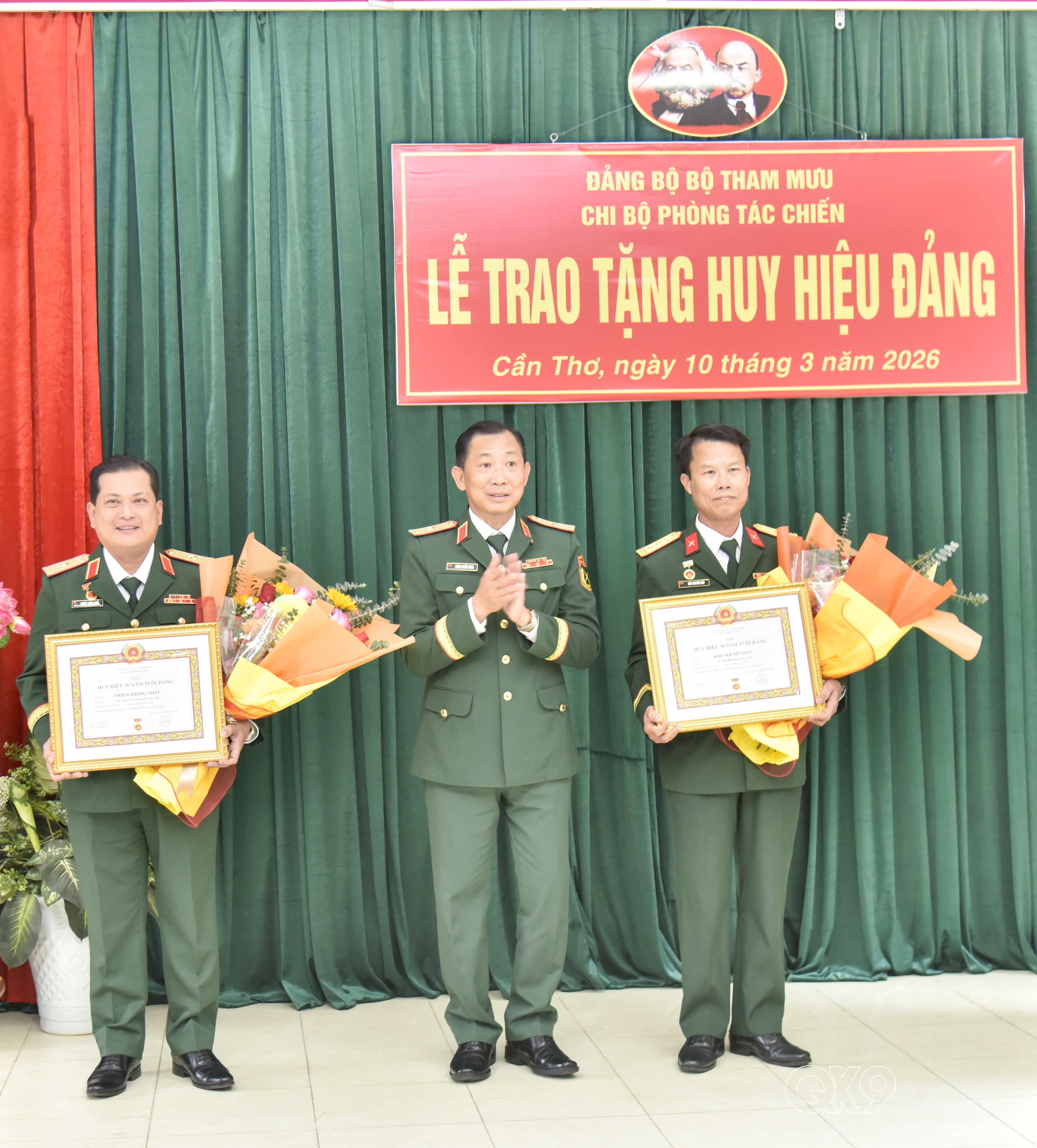 Thiếu tướng Huỳnh Chiến Công, Bí thư Đảng ủy Bộ Tham mưu, Phó Tham mưu trưởng Quân khu 9 trao huy hiệu