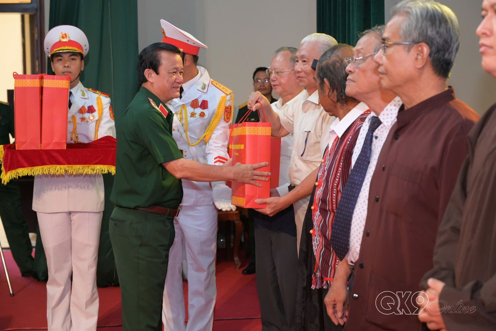 Thay mặt Quân ủy Trung ương, Bộ Quốc phòng và Tổng cục Chính trị Đại tướng Nguyễn Trọng Nghĩa chúc các vị già làng, trưởng thôn, trưởng ấp, trưởng khu, người có uy tín, chức sắc tôn giáo cùng toàn thể các vị đại biểu sức khỏe, hạnh phúc và thành công. Đồng thời, nhấn mạnh: 05 năm qua, với sự quan tâm của Trung ương, sự nỗ lực của cấp ủy, chính quyền, LLVT và Nhân dân, Nam Bộ đã đạt được nhiều kết quả quan trọng trên các lĩnh vực KT, VH-XH, QP, AN. Bằng uy tín và trách nhiệm của mình, các vị già làng, trưởng thôn, trưởng ấp, trưởng khu, người có uy tín, chức sắc tôn giáo đã tích cực vận động dòng họ, con cháu, tín đồ chấp hành pháp luật, tham gia bảo vệ an ninh trật tự, giữ gìn biên giới, đấu tranh làm thất bại âm mưu, thủ đoạn của các thế lực thù địch lợi dụng vấn đề dân tộc, tôn giáo, dân chủ, nhân quyền để chia rẽ khối đại đoàn kết toàn dân tộc. Những đóng góp đó là hết sức quý báu, rất đáng trân trọng và biểu dương.