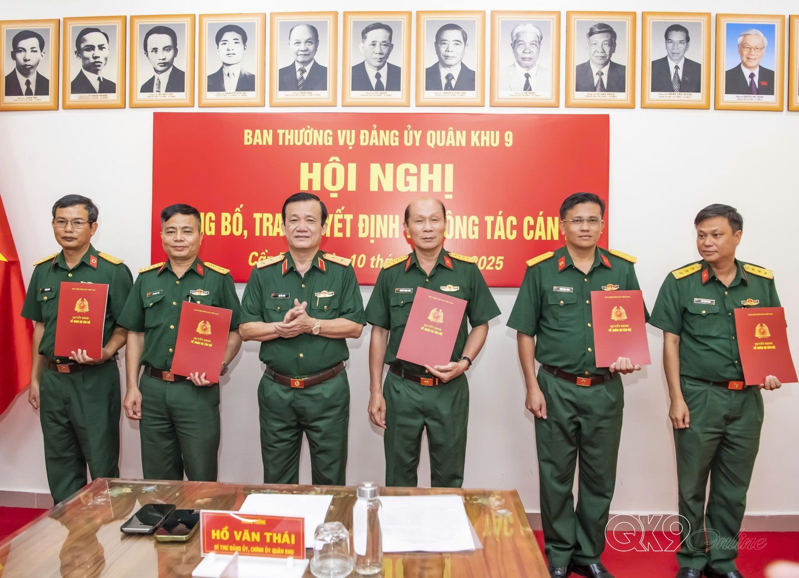 Theo các quyết định của Bộ Quốc Phòng và Quân khu, Trung tướng Hồ Văn Thái trao quyết định 02 đồng chí nghỉ hưu theo chế độ, 05 đồng chí nhận điều động, bổ nhiệm.