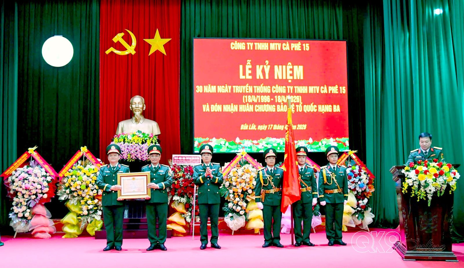 Thừa ủy quyền của Chủ tịch nước, Thiếu tướng Lương Đình Chung trao Huân chương Bảo vệ Tổ quốc hạng Ba cho Công ty TNHH MTV Cà phê 15 vì đã có thành tích xuất sắc trong công tác huấn luyện, sẵn sàng chiến đấu, xây dựng lực lượng Quân đội nhân dân, củng cố quốc phòng, góp phần vào sự nghiệp xây dựng chủ nghĩa xã hội và bảo vệ Tổ quốc.