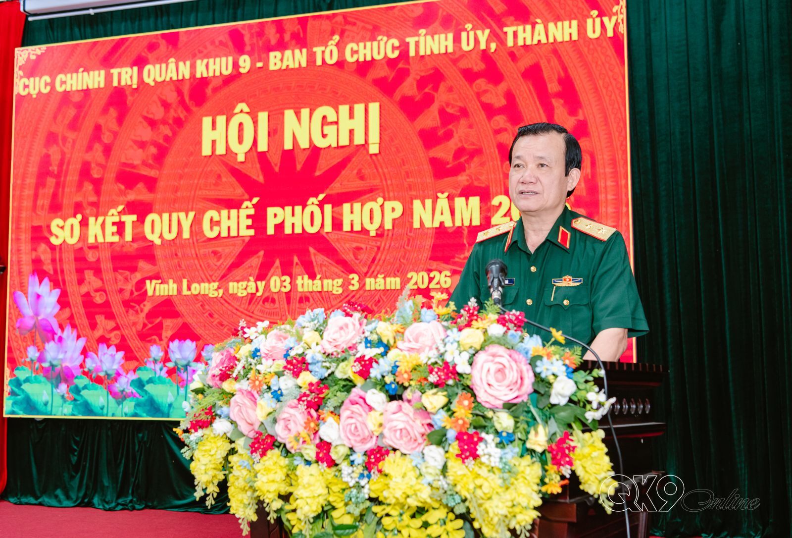 Phát biểu tại hội nghị, Trung tướng Hồ Văn Thái nhấn mạnh, để tiếp tục nâng cao chất lượng, hiệu quả công tác phối hợp giữa Cục Chính trị Quân khu 9 và Ban Tổ chức các tỉnh ủy, thành ủy trên địa bàn cần tiếp tục nghiên cứu, đổi mới nội dung, phương thức phối hợp sát thực tế, đáp ứng yêu cầu nhiệm vụ; tăng cường phối hợp trong công tác giáo dục chính trị tư tưởng, phát triển đội ngũ cán bộ, đảng viên; chú trọng bồi dưỡng, nâng cao phẩm chất chính trị, đạo đức, lối sống, năng lực lãnh đạo, sức chiến đấu của tổ chức đảng các cấp. Phối hợp phát huy vai trò tham mưu, đề xuất với cấp ủy Đảng các cấp những giải pháp đột phá, hiệu quả trong công tác xây dựng Đảng. Bên cạnh đó, triển khai công tác đào tạo, bồi dưỡng cán bộ, ưu tiên đào tạo cao cấp lý luận chính trị cho cán bộ mới được điều động về Ban CHQS cấp xã.