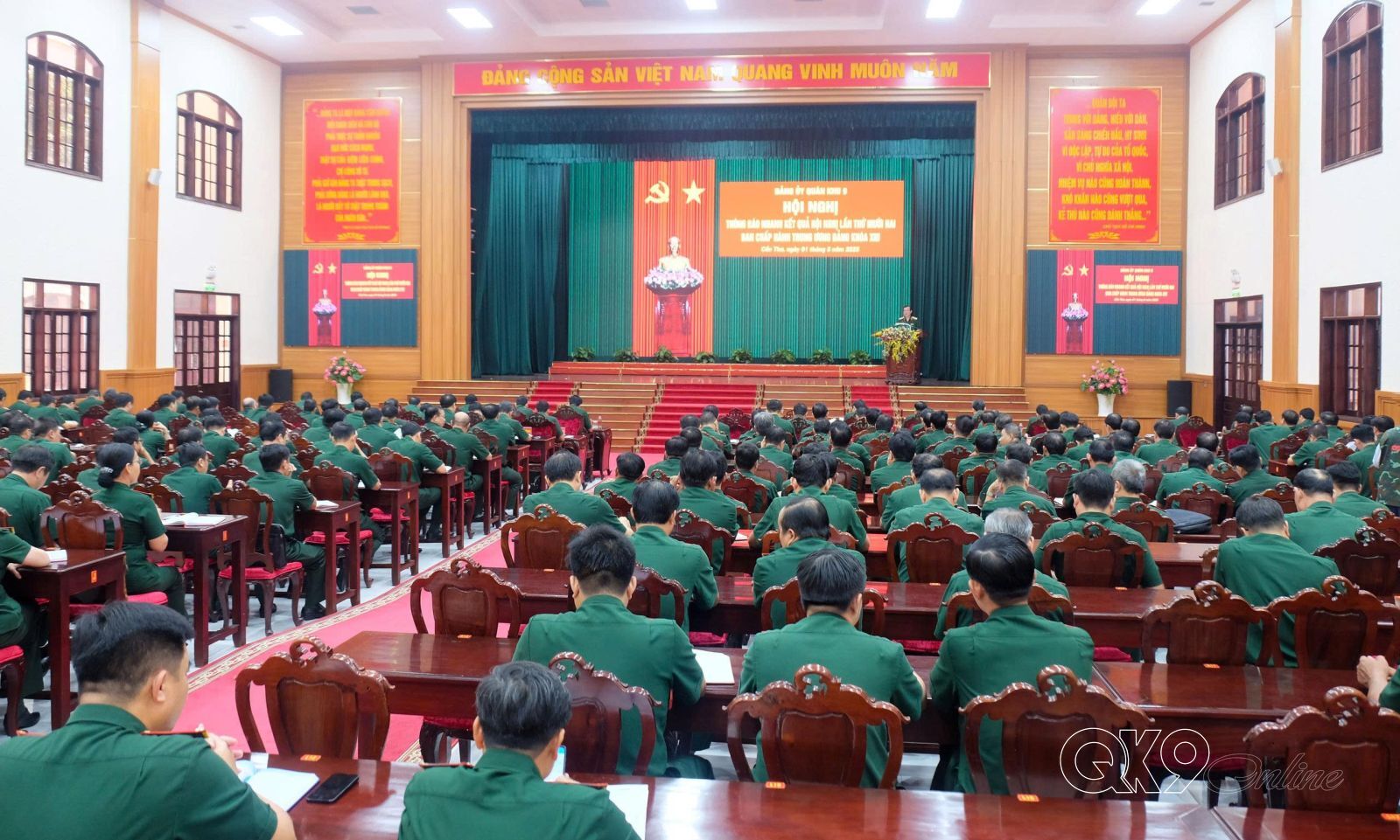 Tại Hội nghị, Trung tướng Hồ Văn Thái thông báo nhanh Kết quả Hội nghị lần thứ 12 Ban Chấp hành Trung ương Đảng khóa XIII gồm 04 nhóm nội dung: Nhóm nội dung về công tác chuẩn bị Đại hội XIV của Đảng; nhóm nội dung tạo cơ sở chính trị, pháp lý cho mục tiêu tiếp tục cải cách, đổi mới đất nước trong thời gian tới; nhóm nội dung về công tác cán bộ; một số nội dung khác theo quy chế làm việc của Ban Chấp hành Trung ương khóa XIII.