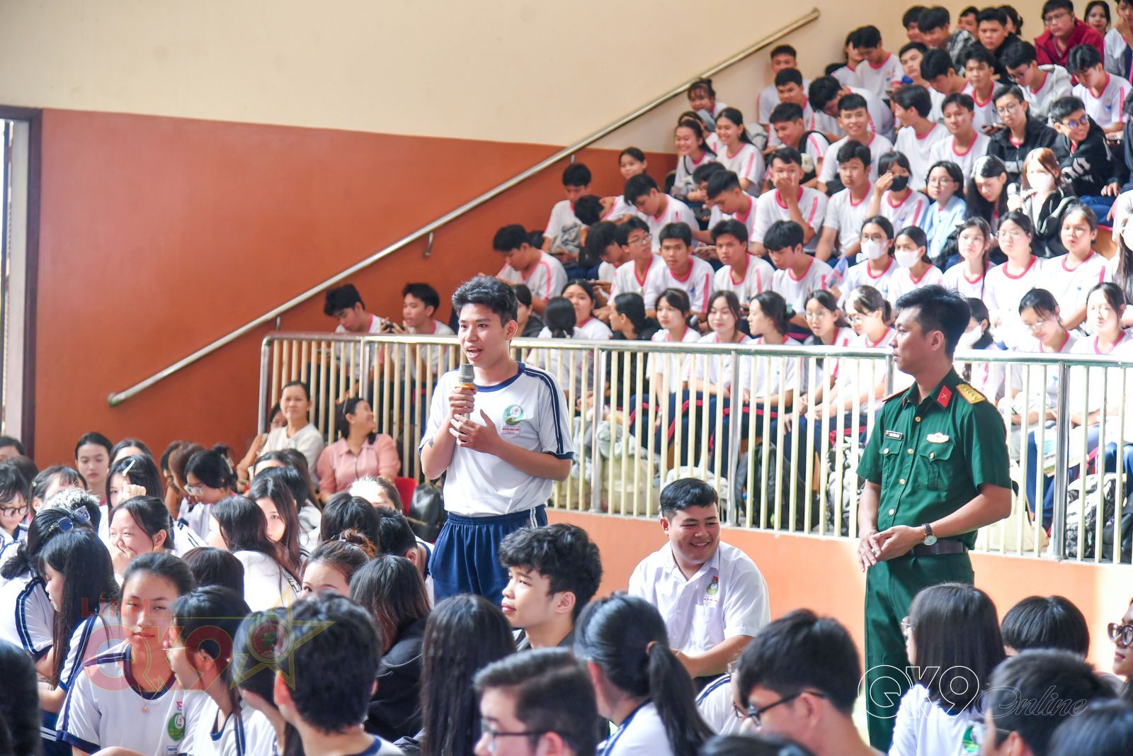 Tại sân Trường THPT Lưu Văn Liệt, trên 1.100 học sinh khối 12 của trường và Trường THPT Vĩnh Long tề tựu đông đủ. Những câu hỏi với Ban TSQS Bộ Quốc phòng đã tạo nên không gian đối thoại đầy năng lượng. Khác với nhiều bạn bè còn đang phân vân chọn khối thi, bạn Nguyễn Võ Minh Đăng, học sinh lớp 12A12 Trường THPT Lưu Văn Liệt tự xác định cho mình mục tiêu thi vào Trường Sĩ quan Chính trị ngay từ những ngày đầu cấp ba. “Dù gia đình chưa ai theo con đường binh nghiệp nhưng chính sự kỷ luật và hình ảnh “Bộ đội Cụ Hồ” đã thôi thúc tôi tự “mở đường” cho mình. Hơn nữa vào Quân đội tôi được miễn học phí, có phụ cấp và đảm bảo việc làm. Đó là cách tốt nhất để tôi giảm bớt gánh nặng cho gia đình và rèn luyện bản thân”. Minh Đăng bộc bạch.