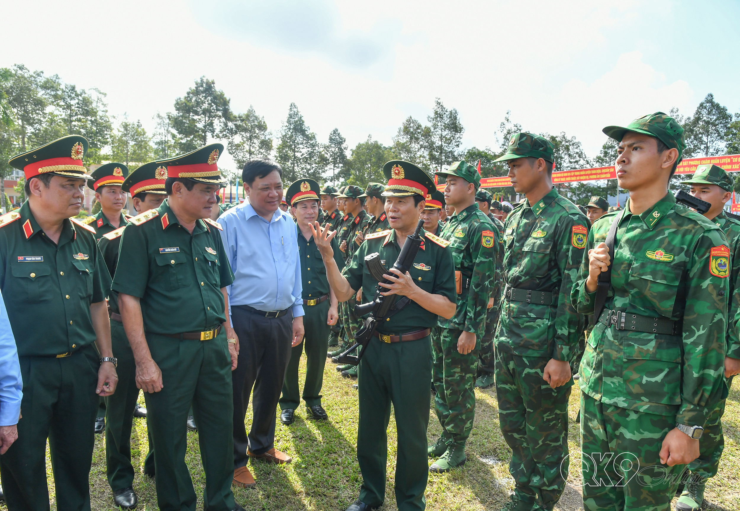 Phát biểu chỉ đạo buổi lễ, Đại tướng Nguyễn Tân Cương yêu cầu lực lượng vũ trang tỉnh thường xuyên xây dựng lòng tin và ý chí quyết tâm cho cán bộ, chiến sĩ; tổ chức tập huấn, bồi dưỡng, rèn luyện nâng cao chất lượng đội ngũ cán bộ về mọi mặt; chú trọng huấn luyện tại chức nâng cao trình độ chuyên môn, nghiệp vụ cho chỉ huy và cơ quan. Tổ chức huấn luyện cho bộ đội thường trực, lực lượng DBĐV, DQTV và diễn tập các hình thức chiến thuật, diễn tập KVPT theo kế hoạch, sát với đối tượng tượng, đặc điểm, nhiệm vụ và thế trận KVPT địa phương. Duy trì và nâng cao chất lượng các chế độ huấn luyện, tiến hành tốt công tác kiểm tra, giám sát, kịp thời chân chỉnh những hạn chế, yếu kém. Phát huy sức mạnh của các tổ chức quần chúng, thực hiện tốt các phong trào thi đua đột kích và phong trào thi đua Quyết thắng, tạo khí thể thi đua huấn luyện sôi nỗi trong các cơ quan, đơn vị.