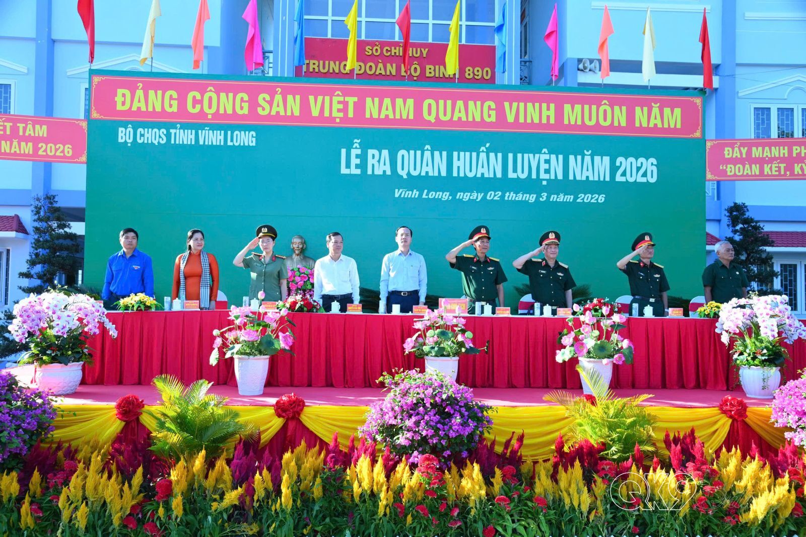 * Đại tá Nguyễn Chí Linh, Phó Tham mưu trưởng quân khu; Đồng chí Trần Trí Quang, Phó Bí thư Tỉnh ủy, Chủ tịch UBND tỉnh Vĩnh Long dự lễ ra quân huấn luyện tại Bộ CHQS tỉnh.