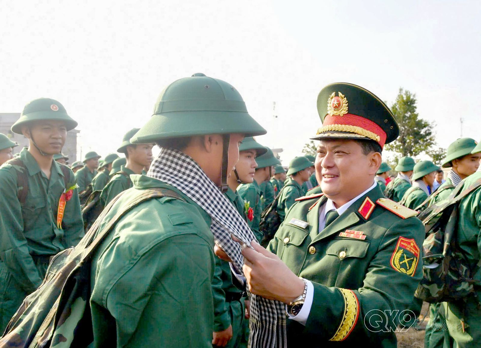 Thiếu tướng Chiêm Thống Nhất động viên thanh niên Cà Mau lên đường nhập ngũ.