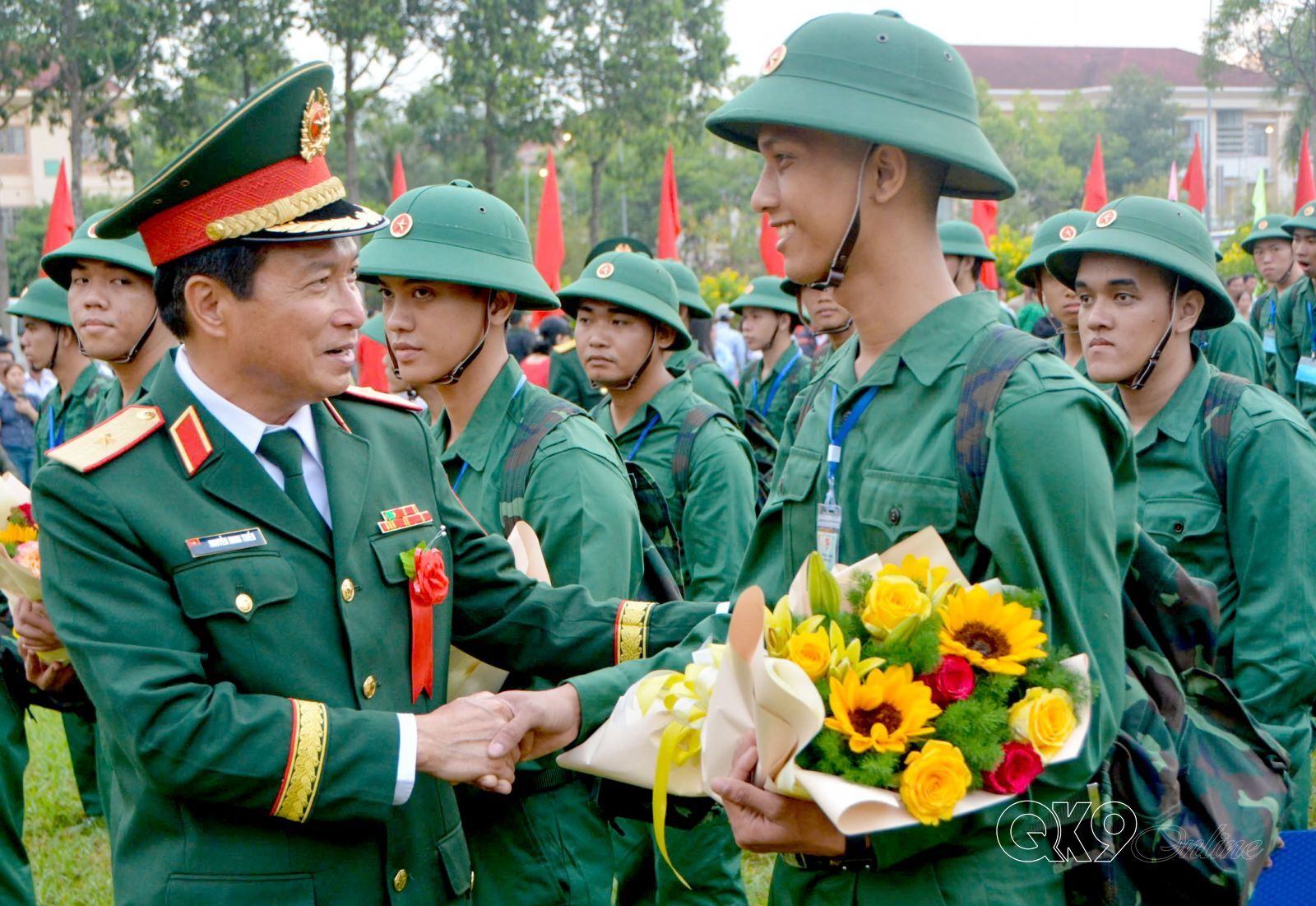Thượng tướng Đỗ Xuân Tụng, Ủy viên BCH Trung ương Đảng, Phó Chủ nhiệm Tổng cục Chính trị Quân đội nhân dân Việt Nam cùng lãnh đạo Quân khu 9 và địa phương động viên thanh niên hăng hái lên đường.