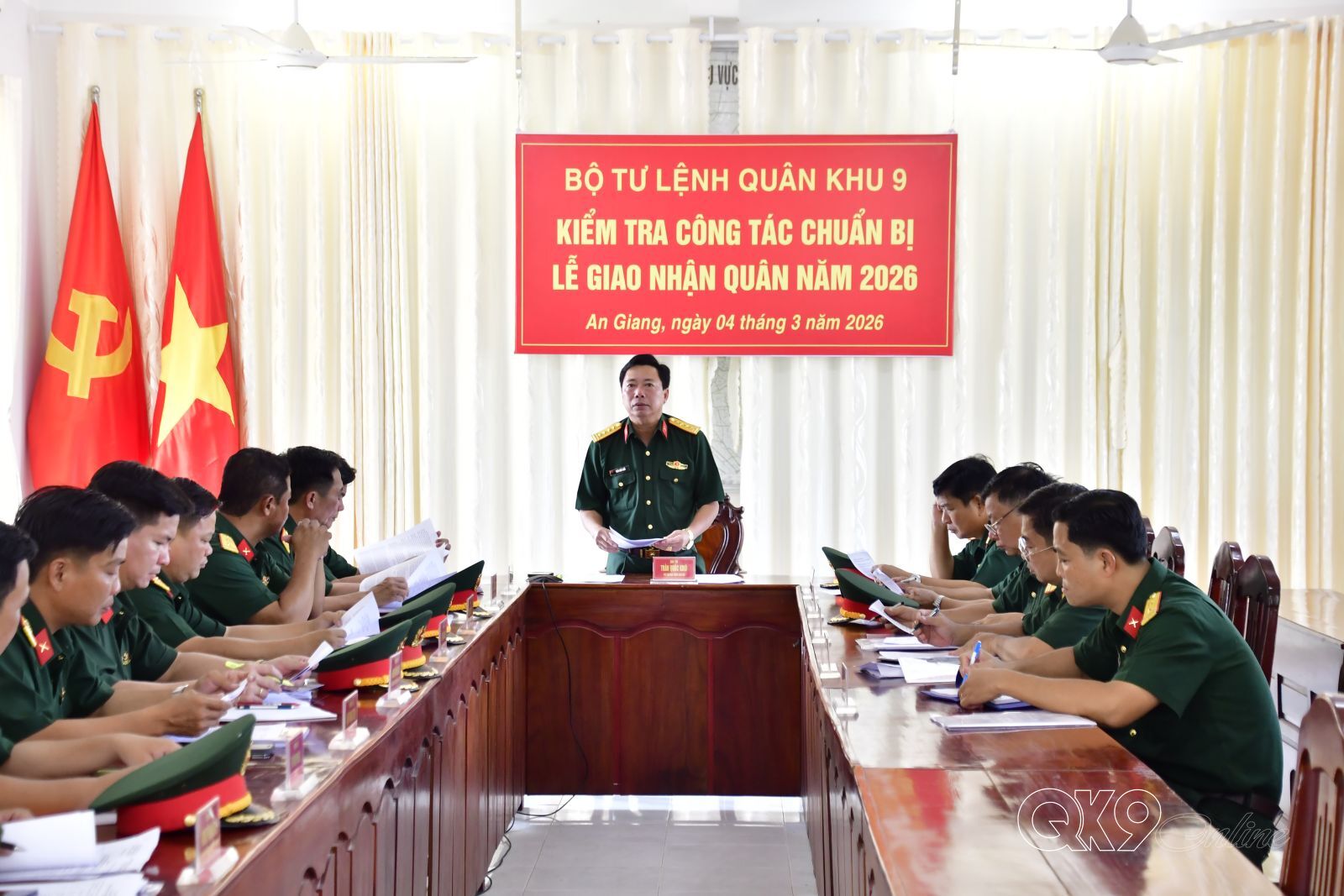 *Kiểm tra công tác tổ chức Lễ giao, nhận quân năm 2026 tại Ban Chỉ huy PTKV6 – Ngọc Chúc, Bộ CHQS tỉnh An Giang, Đại tá Trần Quốc Khởi, Phó Tham mưu trưởng Quân khu đánh giá cao tinh thần trách nhiệm, sự chủ động của các cơ quan, đơn vị và địa phương trong triển khai công tác giao, nhận quân năm 2026. Đồng thời nhận định, công tác tuyển chọn và gọi công dân nhập ngũ năm nay được chuẩn bị toàn diện, đúng quy định; chất lượng thanh niên nhập ngũ tiếp tục được nâng lên; sự phối hợp giữa quân sự, công an và các ban, ngành, đoàn thể ngày càng chặt chẽ, tạo sự đồng thuận cao trong Nhân dân./.