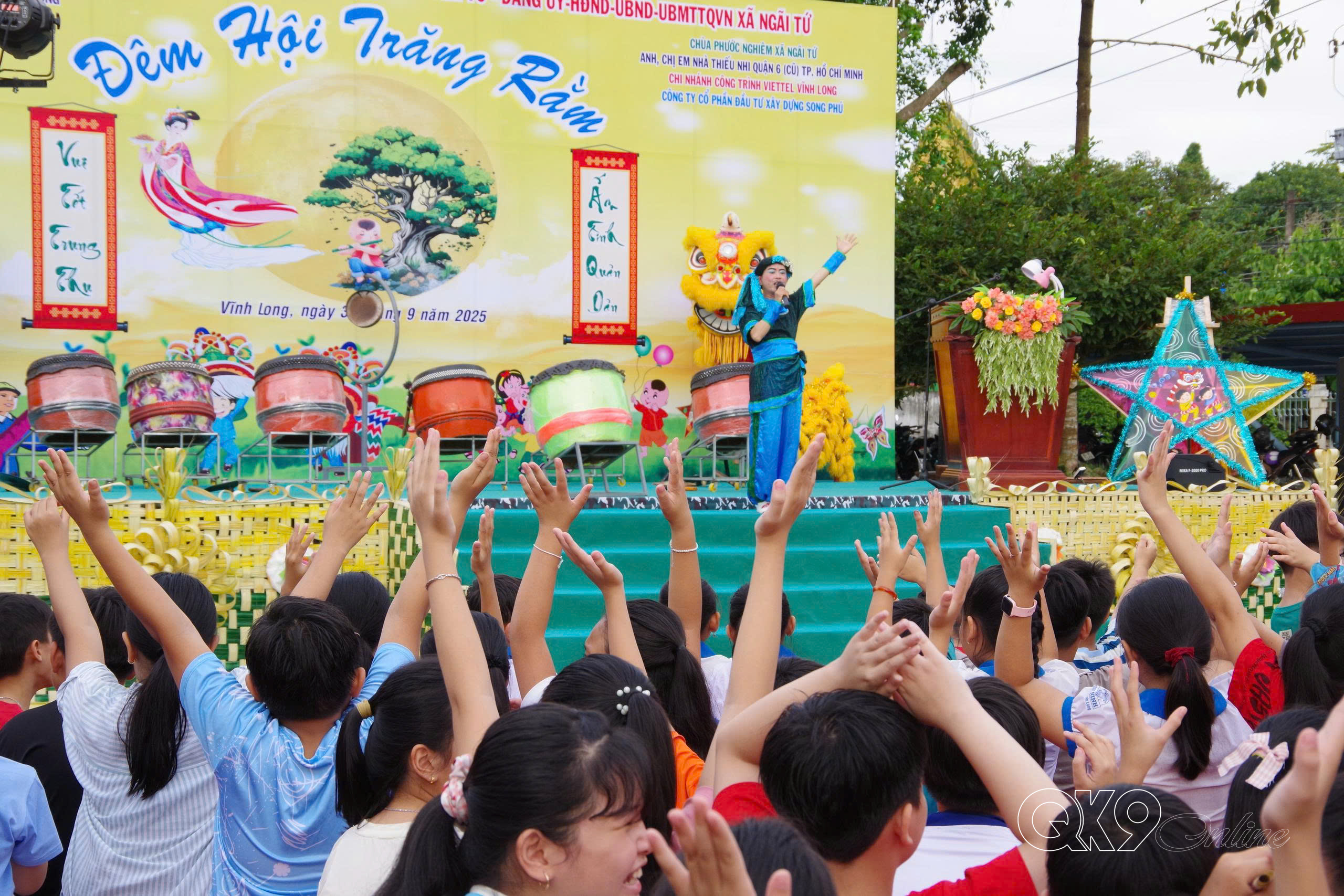 Tiếng trống lân giòn giã, những tiết mục văn nghệ sôi động cùng phần đồng diễn võ thuật của Đoàn lân Sư rồng Lục Anh Đường đã mở màn đêm hội tưng bừng. Trên 1.000 thiếu nhi, trong đó có 200 cháu là con SQ, QNCN và 800 cháu trên địa bàn xã Ngãi Tứ cùng quây quần trong không khí náo nhiệt, háo hức chờ đón nhiều hoạt động hấp dẫn. Đại tá Lê Quang Thọ, Phó Chỉ huy trưởng Bộ CHQS tỉnh Vĩnh Long cho hay: “Chúng tôi mong muốn các cháu thiếu nhi được vui chơi trong môi trường an toàn, bổ ích; đồng thời, khích lệ các cháu học tập, rèn luyện, trở thành những công dân có ích”.